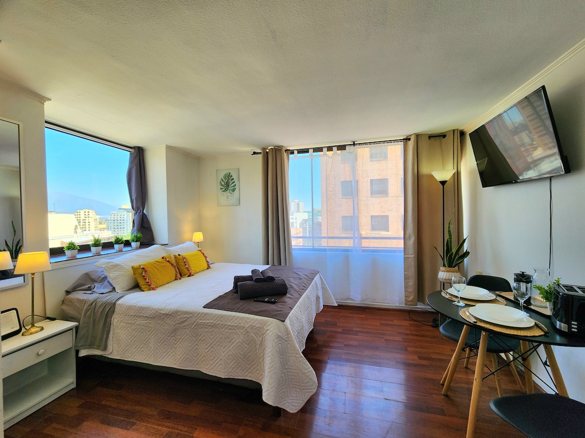 Apartament Alto Standard położony w doskonałej dzielnicy Santiago, kilka kroków od parku Arauco, restauracji i centrów handlowych, w pobliżu klinik, atrakcji turystycznych i wypożyczalni sprzętu narciarskiego. Będziesz mieszkać jak lokalni mieszkańcy, z pięknym widokiem na Andy i wszystkimi udogodnieniami, które sprawią, że Twój pobyt będzie niezapomniany. Apartament został zaprojektowany jako eleganckie i inspirujące schronienie. Poczujesz się jak w domu i będziesz cieszyć się przytulną i relaksującą przestrzenią.