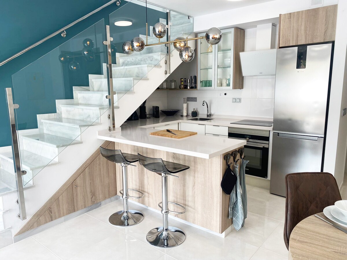 Luksusowe mieszkanie, 15 minut spacerem od słynnej piaszczystej plaży La Zenia. 2 tarasy z widokiem na basen/ogród, wygodne miejsce parkingowe przy ulicy. Wszystko, czego możesz potrzebować, znajduje się w pobliżu. Centralna klimatyzacja, zmywarka, pralka/suszarka. Wi-Fi, telewizor.