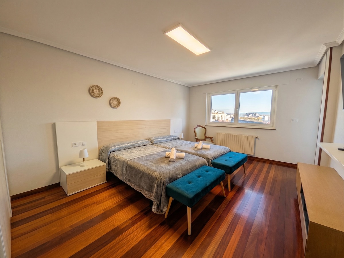 Pięć minut spacerem od Casco Antiguo i centrum miasta, będziesz cieszyć się nowo wyremontowanym, bardzo jasnym i wygodnym apartamentem. Posiada trzy bardzo przestronne sypialnie z podwójnym łóżkiem i dwie łazienki z toaletą. Szybkie Wi-Fi, śniadanie, miejsce parkingowe w tym samym budynku i widok na zamek ze wszystkich pokoi zachwycą Cię. Logement confortable et lumineux à cinq minutes à pied de la vieille ville.