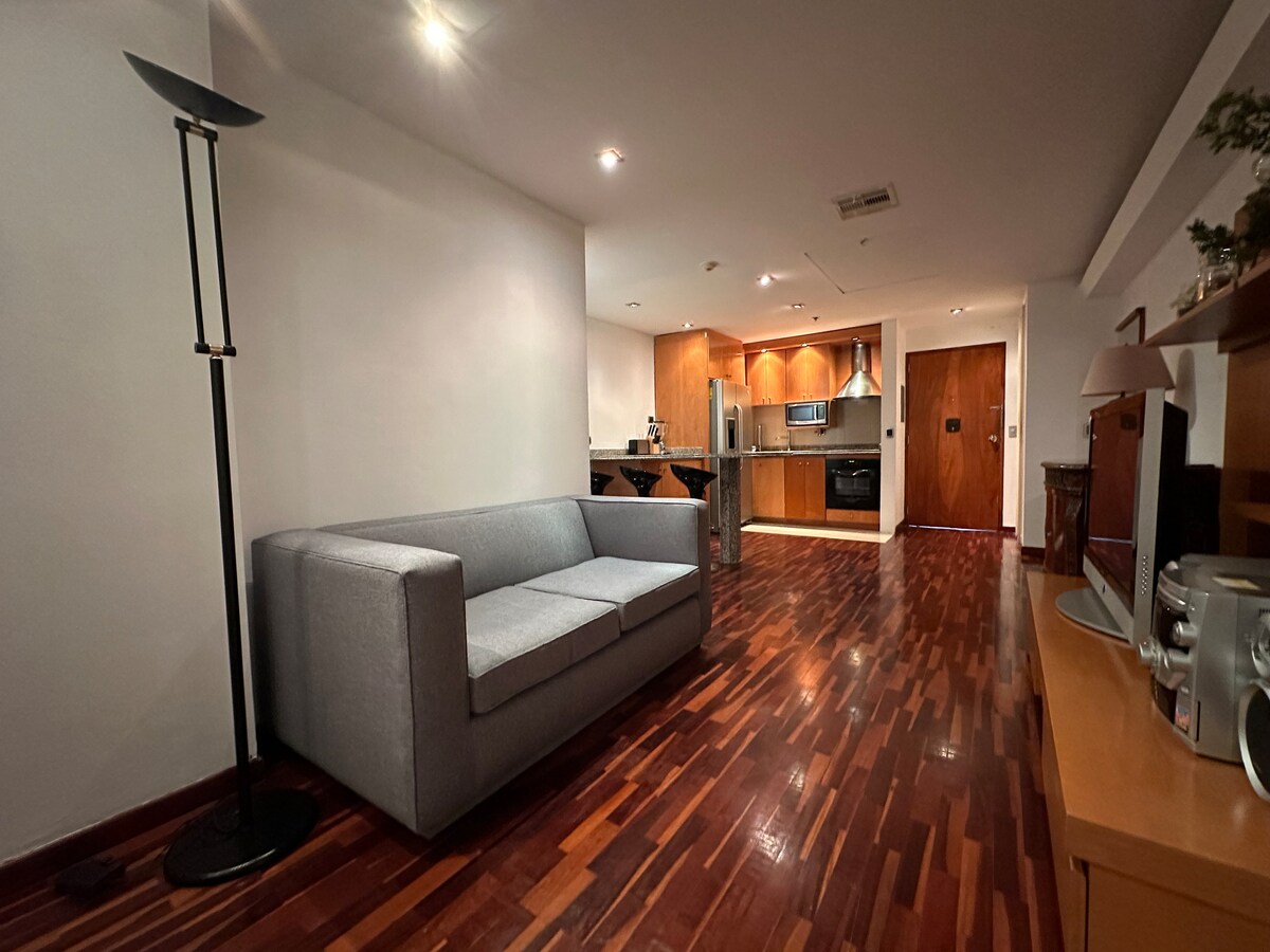 Ciesz się przytulnym apartamentem typu executive w wygodnym i pięknym otoczeniu ze wszystkim, czego potrzebujesz do przyjemnego pobytu dla maksymalnie dwóch gości, a także uprzywilejowaną i bezpieczną lokalizacją w El Rosal, gminie Chacao, aktywnej dzielnicy handlowej, kulturalnej i gastronomicznej z Caracas. Zaledwie kilka kroków dzieli Cię od restauracji, aptek, sklepów, barów, banków, centrów handlowych i łatwego połączenia z głównymi alejami, autostradami i metrem Caracas.
