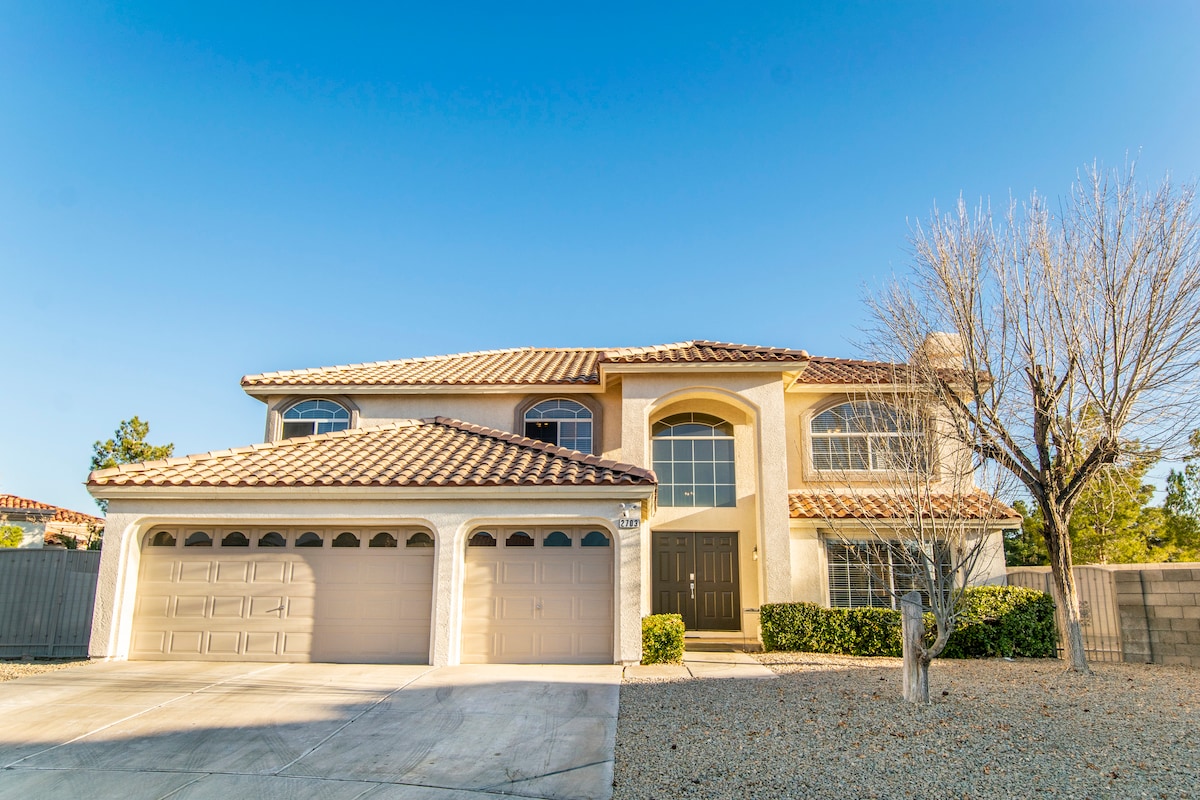 Piękna i przestronna 4 sypialnie/3 łazienki z 5 łóżkami/workiem na fasolę zamienia się w podwójny materac . Dom znajduje się mniej niż 3 miliony od Strip/Airport. Apartament typu Master z łazienką. Telewizor 86in w pokoju rodzinnym. W pełni wyposażona kuchnia na każdą okazję. Wydzielone miejsce pracy we wszystkich pokojach. Do 1 GB szybkiego internetu do przesyłania strumieniowego, pracy, rozmowy wideo dla Twojej grupy. 2 gry zręcznościowe i stół do pokera. Prywatny basen naziemny. Grill na świeżym powietrzu znajduje się również na prywatnej ślepej uliczce. Przyjazne dla rodzin i zwierząt.