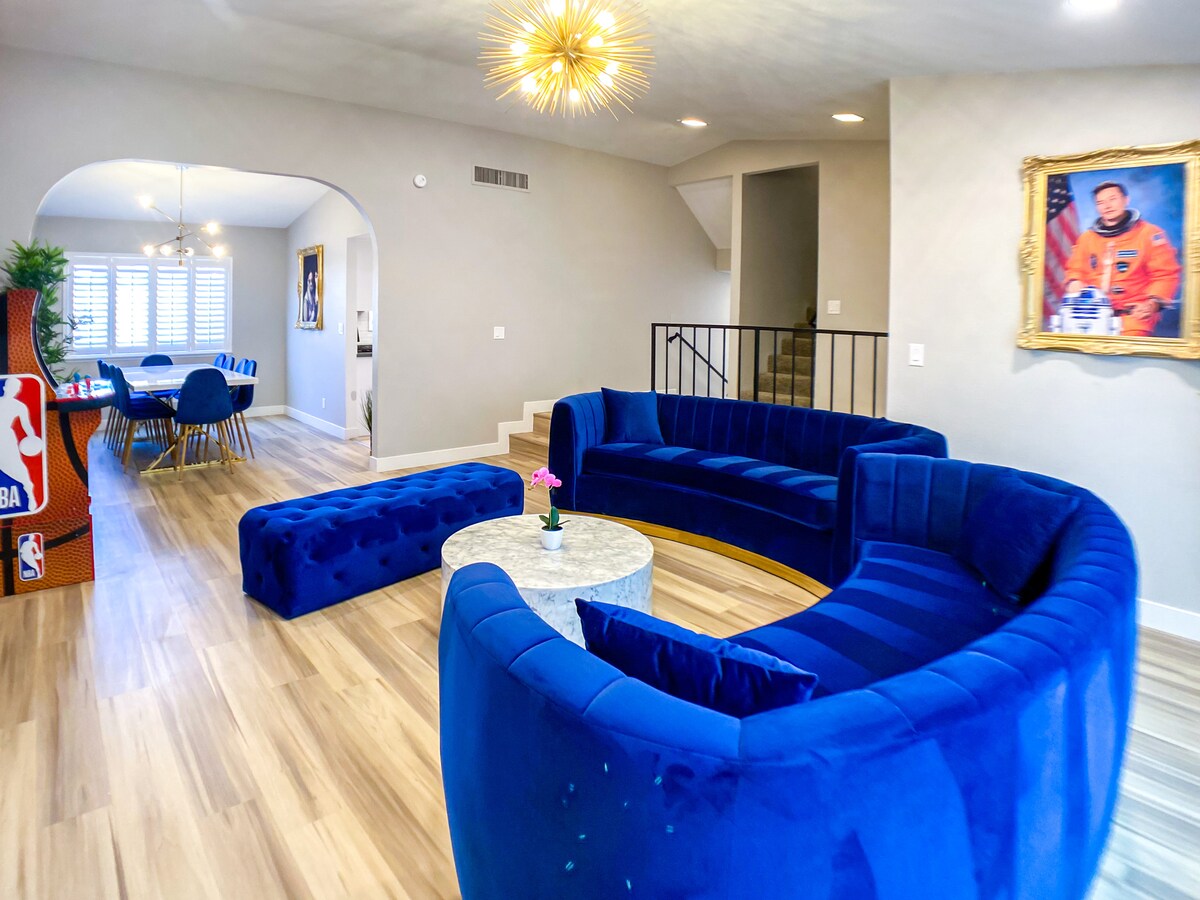 Ta nieruchomość to The Trilogy, ponieważ jest to luksusowy, 3-piętrowy dom zaledwie kilka minut od Vegas Strip. Są tu 2 apartamenty główne, a na każdym poziomie znajdują się sypialnie i łazienki zapewniające maksymalną prywatność. Przestronne podwórko jest pełne ciekawych sposobów spędzania czasu. Podczas pobytu u nas będziesz blisko wszystkiego. Mniej niż 15 minut od pasa I-215. A jeszcze bliżej stadionu Raiders Allegiant, bez autostrady! W tej części miasta jest wiele restauracji, sklepów, rozrywki i nie tylko.