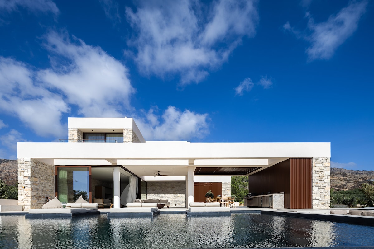 Witamy w naszej prywatnej willi z basenem i siłownią. Oferuje oazę spokoju i luksusu położoną zaledwie 15 minut jazdy samochodem od miasta Heraklion. Z każdego zakątka willi można podziwiać panoramę majestatycznych gór i morza. Niezależnie od tego, czy relaksujesz się przy basenie, czy pijesz poranną kawę na tarasie, sceneria Cię zahipnotyzuje. Willa oferuje połączenie nowoczesnych udogodnień i naturalnego piękna, zapewniając niezapomniany pobyt dla Ciebie i Twoich bliskich.