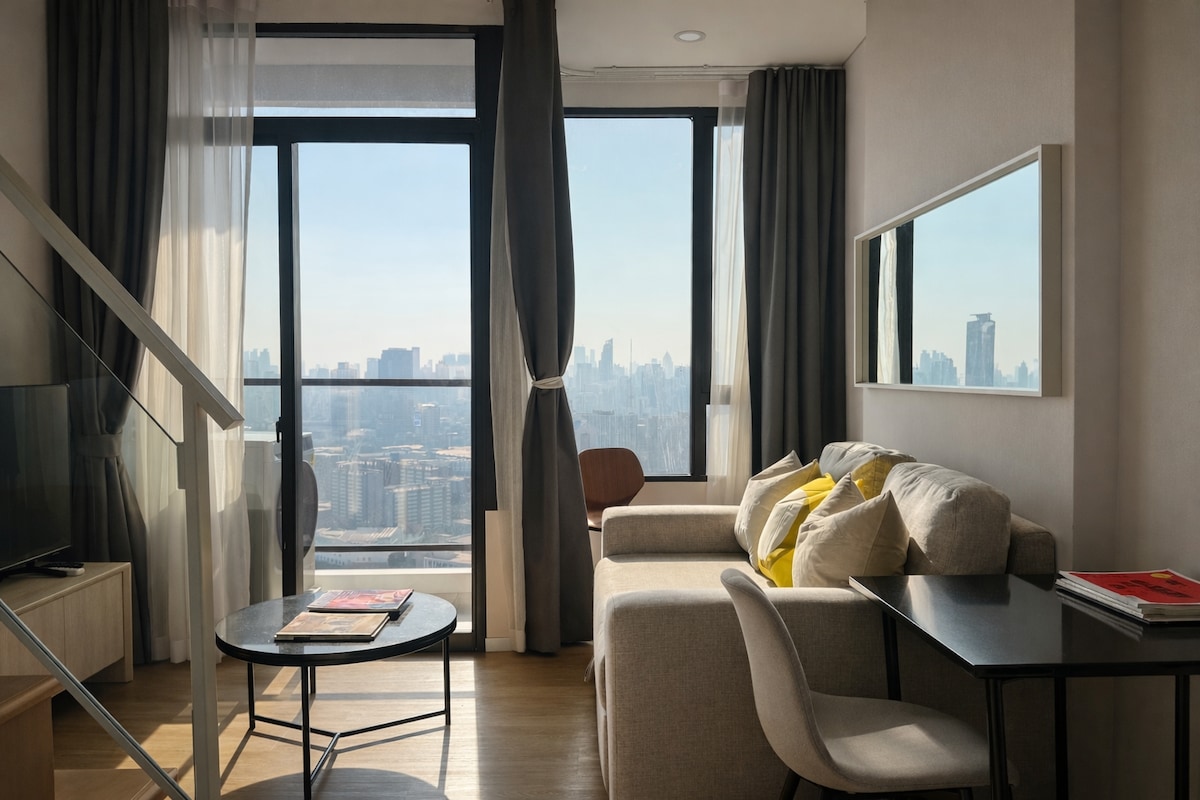 1BR Duplex obok BTS | Basen i siłownia | Lotnisko DMK