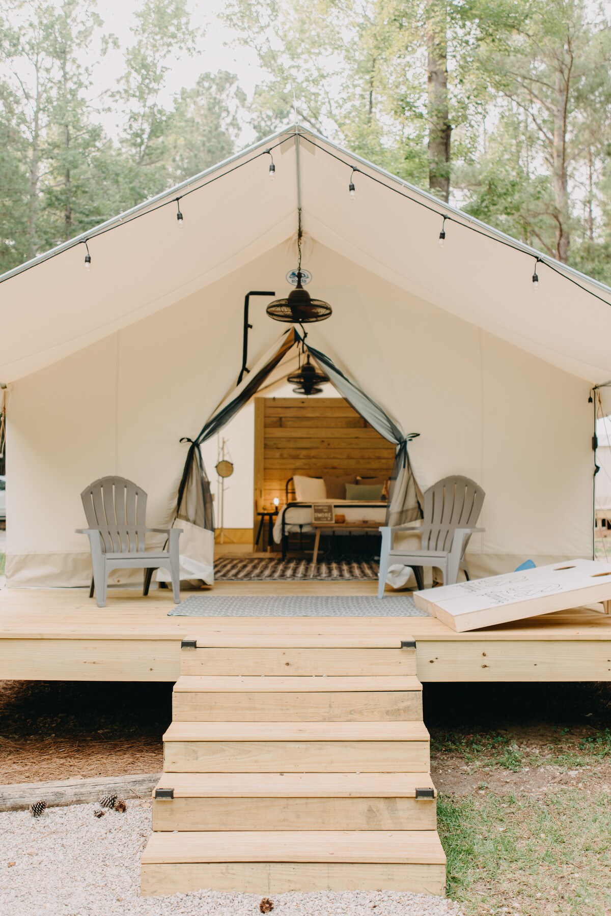 Zanurz się w spokojnym pięknie Teksasu w Ashley's View, gdzie rustykalne życie na świeżym powietrzu spotyka się z nowoczesnym komfortem. Ten luksusowy namiot dzwonowy oferuje niezapomniane wrażenia dla miłośników przyrody i poszukiwaczy przygód. Nasz przestronny namiot glampingowy wyposażony jest w wygodne łóżko typu queen-size, które zapewni spokojny sen. Jest w pełni wyposażony w lodówkę, klimatyzację, kuchenkę mikrofalową i ekspres do kawy Keurig, aby zapewnić Ci jak najbardziej komfortowy pobyt.