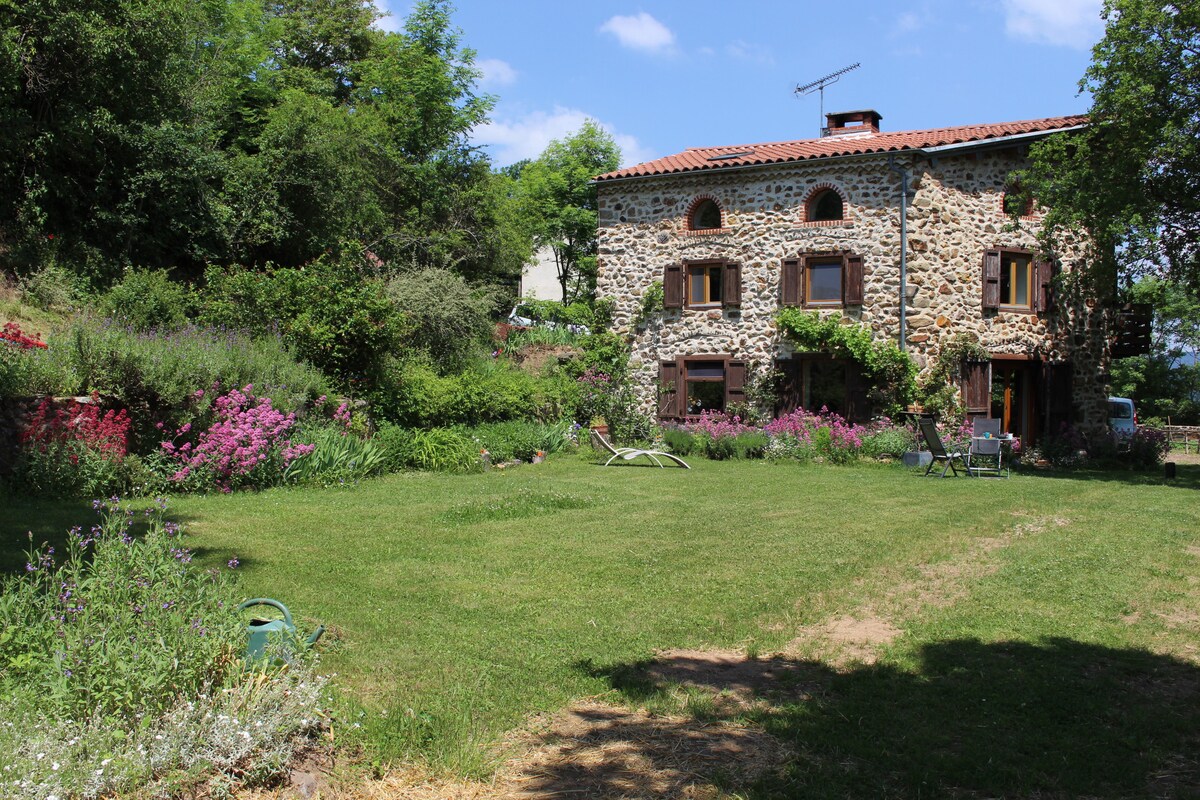 Zafunduj sobie romantyczny wypad do odnowionego XVIII-wiecznego gospodarstwa. Przytulne studio z panoramicznym widokiem na góry, prywatnym jacuzzi i sauną, nieprzeoczone. 🌹 Szampan, kwiaty i płatki, które sprawią, że wieczory będą jeszcze lepsze. Przytulna przestrzeń na świeżym powietrzu z grillem, 5 minut od restauracji i rzeki. 📍35 minut od St-Étienne, 10 minut od Yssingeaux, 30 minut od Le Puy, 10 minut od himalajskich kładek.