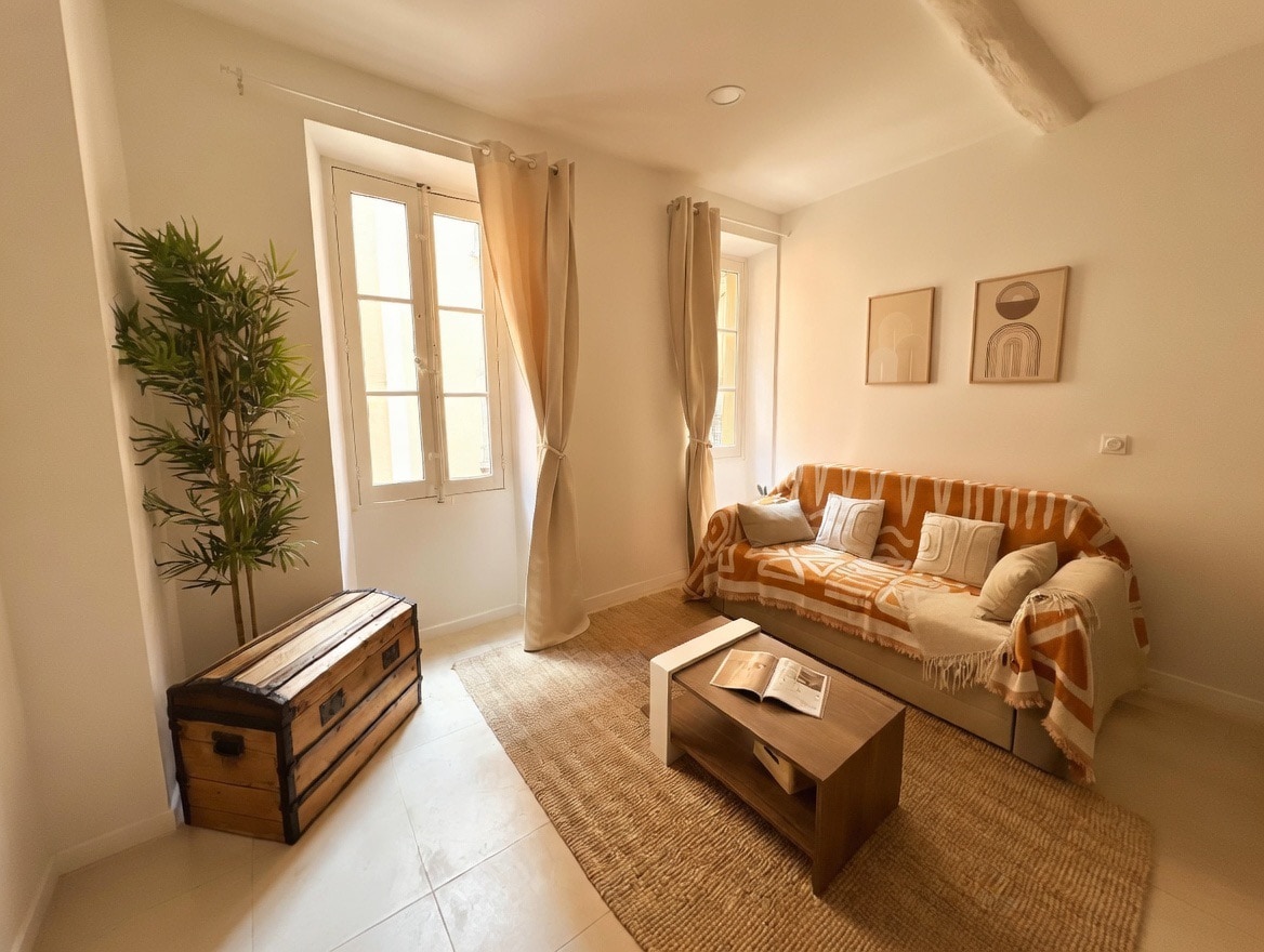 W starym domu rybackim – 2 minuty od plaż i 5 minut od starego portu, Croisette i Palais des Festivals – urocze 2 pokoje o powierzchni 55 m2 w zabytkowej dzielnicy Cannes. Duże okna i wysokie na 3 m sufity, belki, dwa kominki, jasne i przecinające się wschód/zachód, mały balkon. Wyjątkowe położenie na wzgórzu Suquet, w pobliżu malowniczych restauracji, tarasów i antykwariatów...