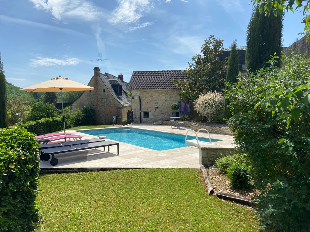 Beautiful cottage with beams and exposed stone just renovated November 2019 Parking and entrance into private courtyard garden with covered eating terrace and your very own jacuzzi. French doors into house The kitchen is fully equipped, the lounge has very comfortable furniture and pretty French antiques, The river vezere is only 50 metres on our own land, excellent for canoeing, wild swimming and picnicking 2 minutes by car to a stunning medieval village 25 minutes from center of Sarlat