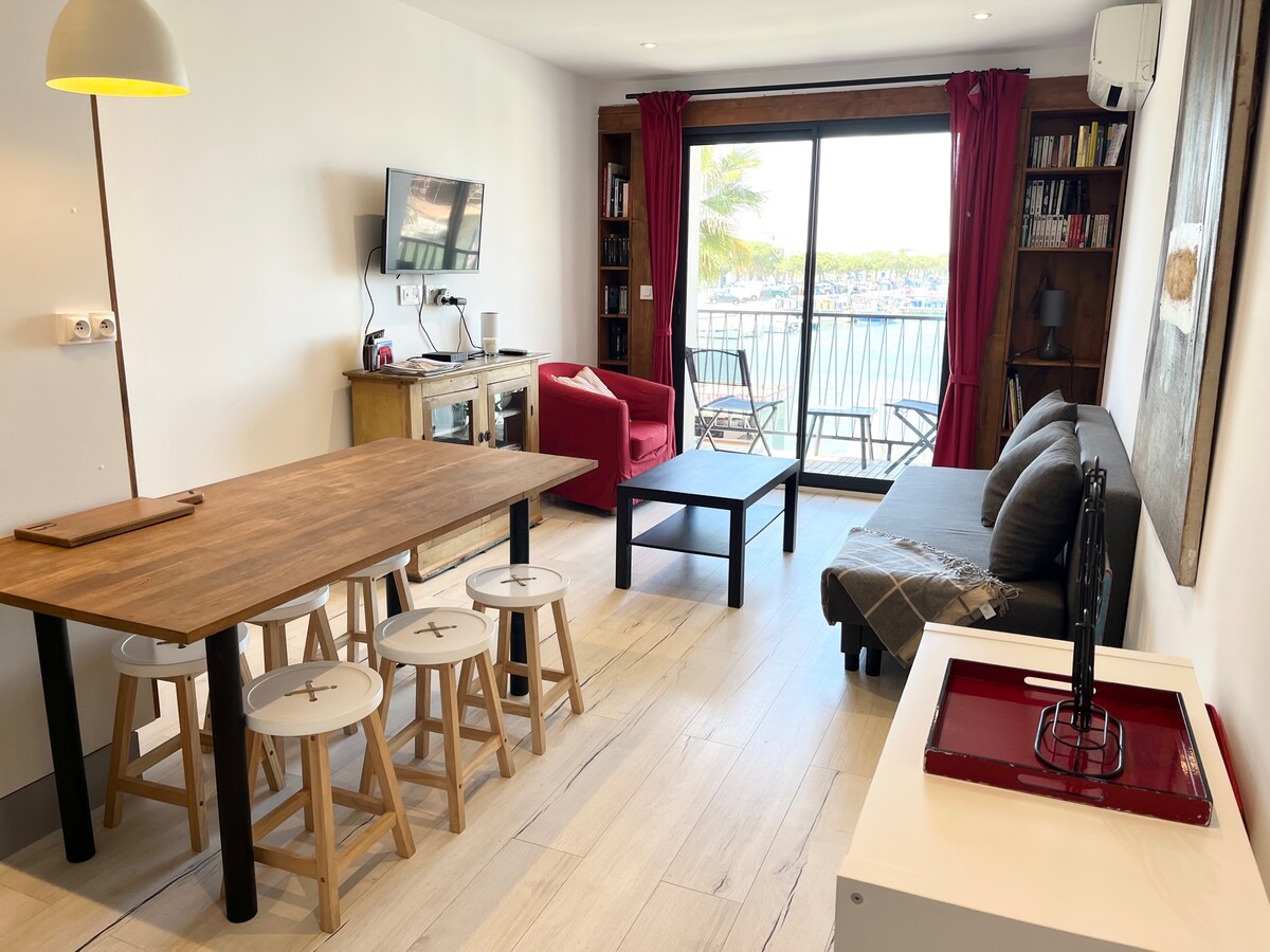 ☀️Zrelaksuj się w tym cichym i eleganckim miejscu. ☀️W samym sercu przystani znajduje się piękne studio o powierzchni 20 m2 i taras z pięknym widokiem na przystań, 3 piętro (bez windy). Dla 2 osób dorosłych lub 1 osoby dorosłej i 1 dziecka ☀️Składa się z salonu wychodzącego na piękny taras, klimatyzacji, w pełni wyposażonej kuchni, Nespresso, lodówki, zmywarki, pralki, piekarnika elektrycznego, mikrofalówki... ☀️8 minut spacerem od plaży i sklepów ☀️Prywatny parking i bezpłatne WIFI 🏊♂️BASEN CZYNNY OD 15 maja do 30 września