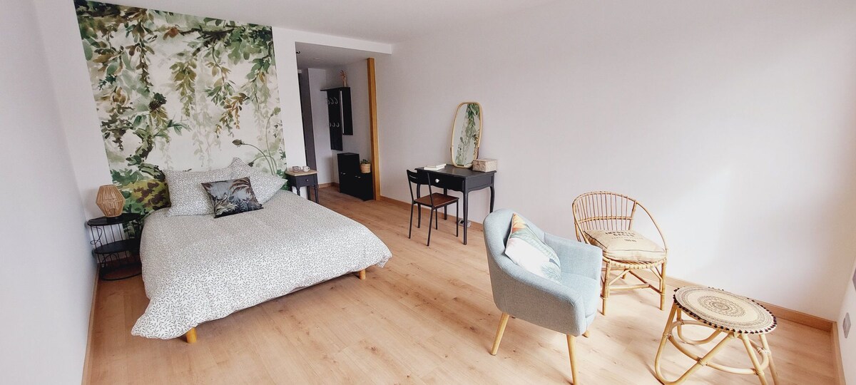 Niezależny apartament typu T2 w naszym domu, składający się z salonu (kuchnia, stół, mała weranda), włoskiej kabiny prysznicowej + wiszącej toalety, a także niezależnej sypialni z nowym łóżkiem (podwójne łóżko 160). Dostęp do ogrodu jest bezpłatny (leżaki do dyspozycji). Pościel i ręczniki są wliczone w cenę. Nienaganna czystość i higiena. Znajdujemy się w bardzo spokojnej okolicy (300 m od centrum miasta i 700 m od plaży), w pobliżu wszystkich udogodnień (sklepy, restauracje).