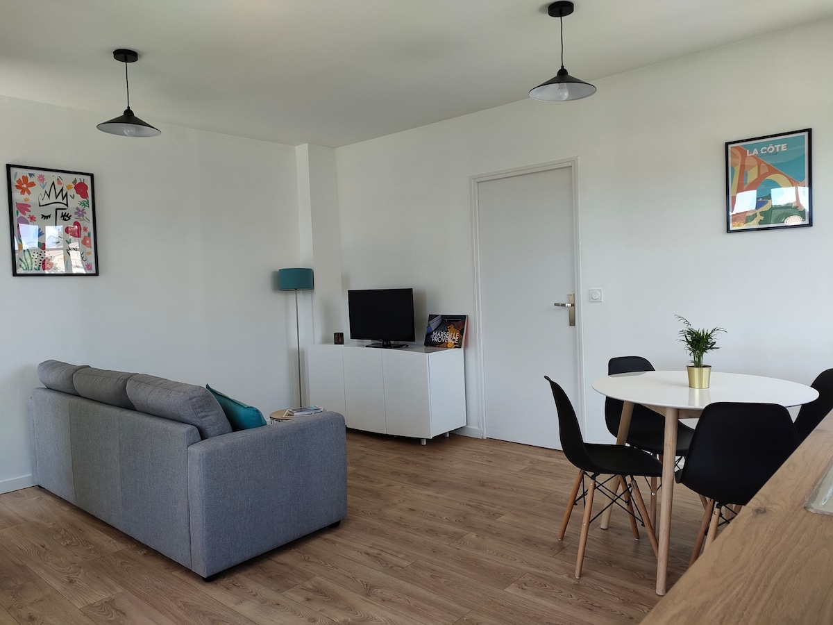 Ten całkowicie odnowiony apartament T2 (z gustem!) jest idealny na pobyt dla par lub rodzin. Docenisz niezależny i słoneczny poziom ogrodu z tarasem i grillem. Na życzenie można skorzystać z 2 rowerów. W pobliżu znajdują się kamieniste i piaszczyste plaże (15 min), Aix en Provence, Marsylia i Martigues (25/30 km), a także lotnisko (10 min) i dworzec TGV Aix (15 min). Marie Line i Robert czekają na Ciebie.