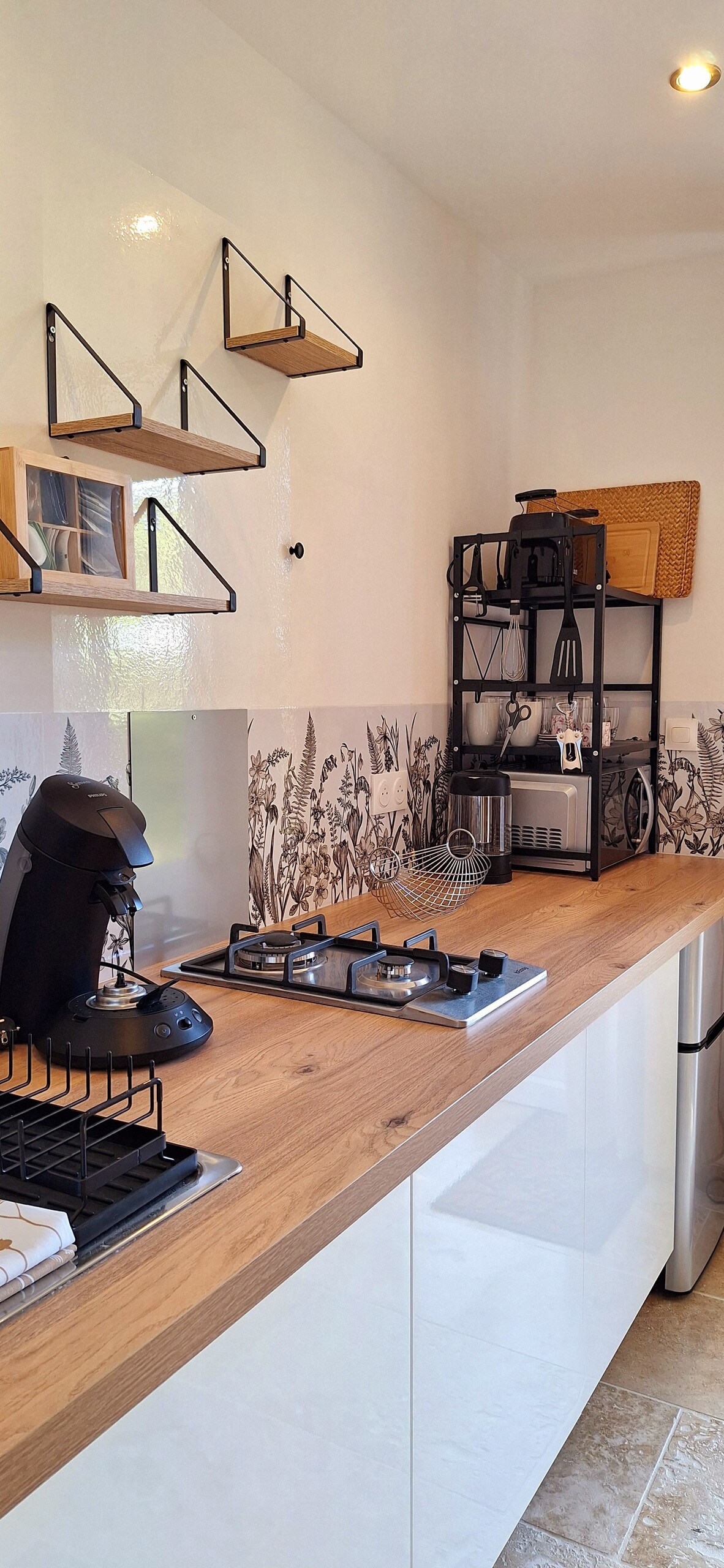A bright countryside gîte, ideal for longer, relaxed stays. The gîte is 28 m², feels spacious and light, and includes a separate bedroom. Set within five hectares of gardens, meadows, and woodland, it offers privacy, calm, and direct access to nature, while still being a short walk from a local baker, small shop, and a friendly English pub. Private terrace, shared pool, fast Wi-Fi, and a comfortable setup for weekly or monthly stays, including remote work.
