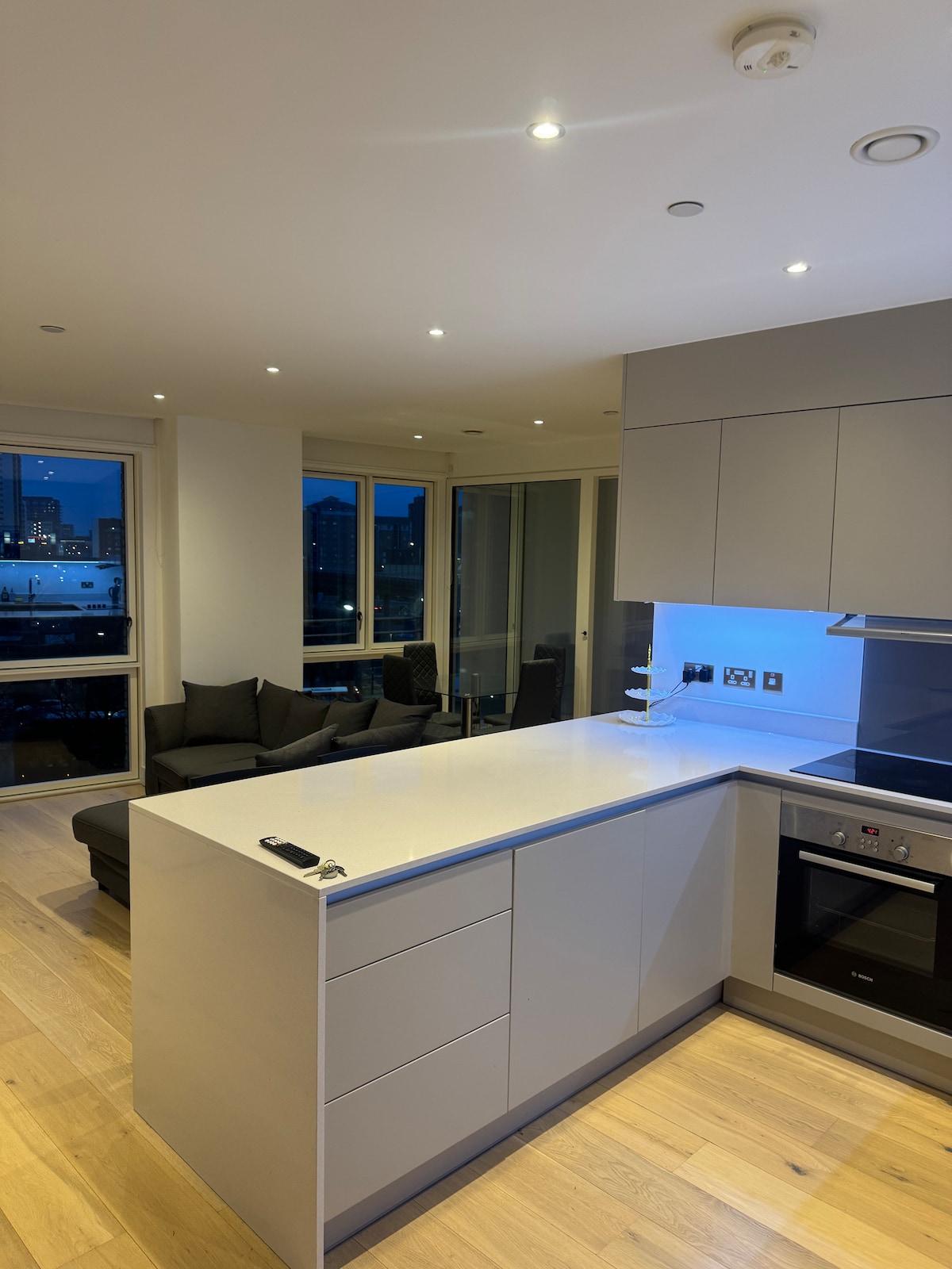 Spokojne, nowoczesne mieszkanie z jedną sypialnią przeznaczone dla dwóch osób dorosłych – idealne dla par, na wyjazdy służbowe lub spokojny pobyt w Londynie. Excel znajduje się w pobliżu Canary Wharf, ma doskonałe połączenia komunikacyjne, szybkie Wi-Fi i wygodne miejsce na relaks po pracowitym dniu Eleganckie mieszkanie nad rzeką z widokiem na Tamizę i O2 Arena. Okna od podłogi do sufitu i jasny, otwarty układ. Zrelaksuj się w pięknie urządzonej przestrzeni, gotuj w w pełni wyposażonej kuchni i odpocznij w spokojnej sypialni.