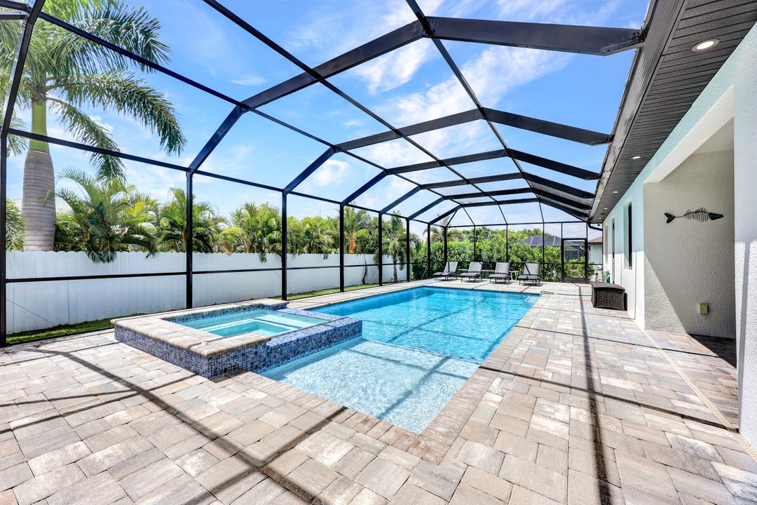Location, Location Location! Quiet , 3 bed 2 Bath Home on a Canal with Private Lanai and Large Pool with a Jetted Spa! Fish from the dock, bring your own boat or rent one, or just hang out with Family and Friends. Walking distance to Popular Restaurants like Lobster Lady, Rumrunners, Fathoms and many more! Publix Grocery Store is within walking distance. Bike to Cape Harbor for concerts and dining. Open Concept Living, Dining and Family Room that all connect to Beautiful Lanai .