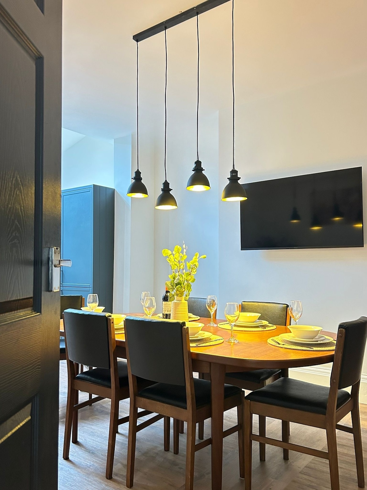 Stylowy wiktoriański klejnot w sercu West Didsbury | Sala kinowa + ogród + luksusowe akcenty + ultraszybkie WiFi + wiele więcej. Zanurz się w luksusie w tej pięknie odnowionej wiktoriańskiej kamienicy, położonej na czterech stylowych piętrach w tętniącym życiem West Didsbury. Ten dom jest idealny na elegancki wypoczynek w mieście. W pobliżu modnych kawiarni, restauracji i połączeń komunikacyjnych – idealne połączenie dziedzictwa kulturowego i nowoczesnego komfortu.