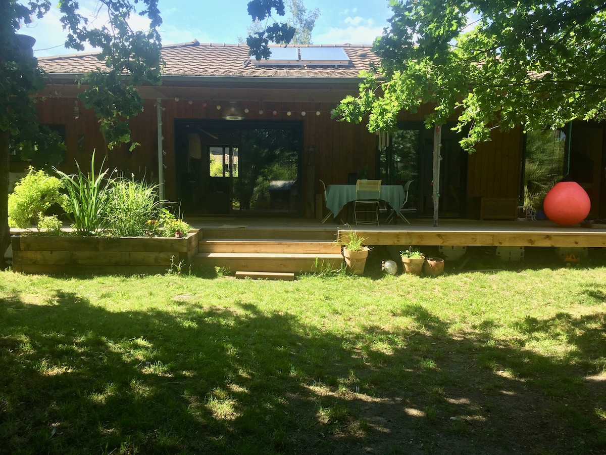Ten spokojny dom oferuje relaksujący pobyt dla całej rodziny. - W pełni wyposażona kuchnia do przygotowywania dobrych dań. - Podziwiaj przyrodę i zachód słońca z okien od podłogi do sufitu w sypialniach na piętrze. - Aperitify dla rodzin lub przyjaciół na tarasie wyposażonym w meble ogrodowe i grill w zielonym otoczeniu. Wyjątkowa lokalizacja 5 min od portu Audenge i 30 min od Dune du Pyla. Ścieżka rowerowa i droga kompostowa w pobliżu ☀️