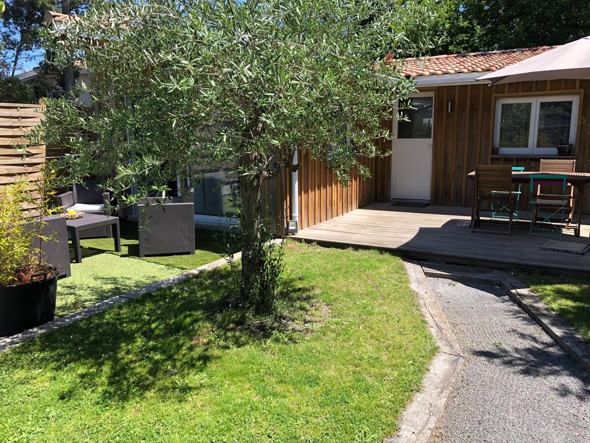 Przyjedź i naładuj baterie w tym uroczym apartamencie w samym sercu pięknego Bassin d'Arcachon. Duży, przytulny pokój z podwójnym łóżkiem (140 cm) i spokojnym widokiem na ogród, jasną łazienką z oknem na las, kuchnią z jadalnią, otwartą na zewnątrz dzięki francuskim drzwiom. Z niecierpliwością czekamy na Twoje powitanie. Jeśli potrzebujesz wskazówek, jak znaleźć najlepsze zajęcia, restauracje itp., chętnie Ci pomożemy.