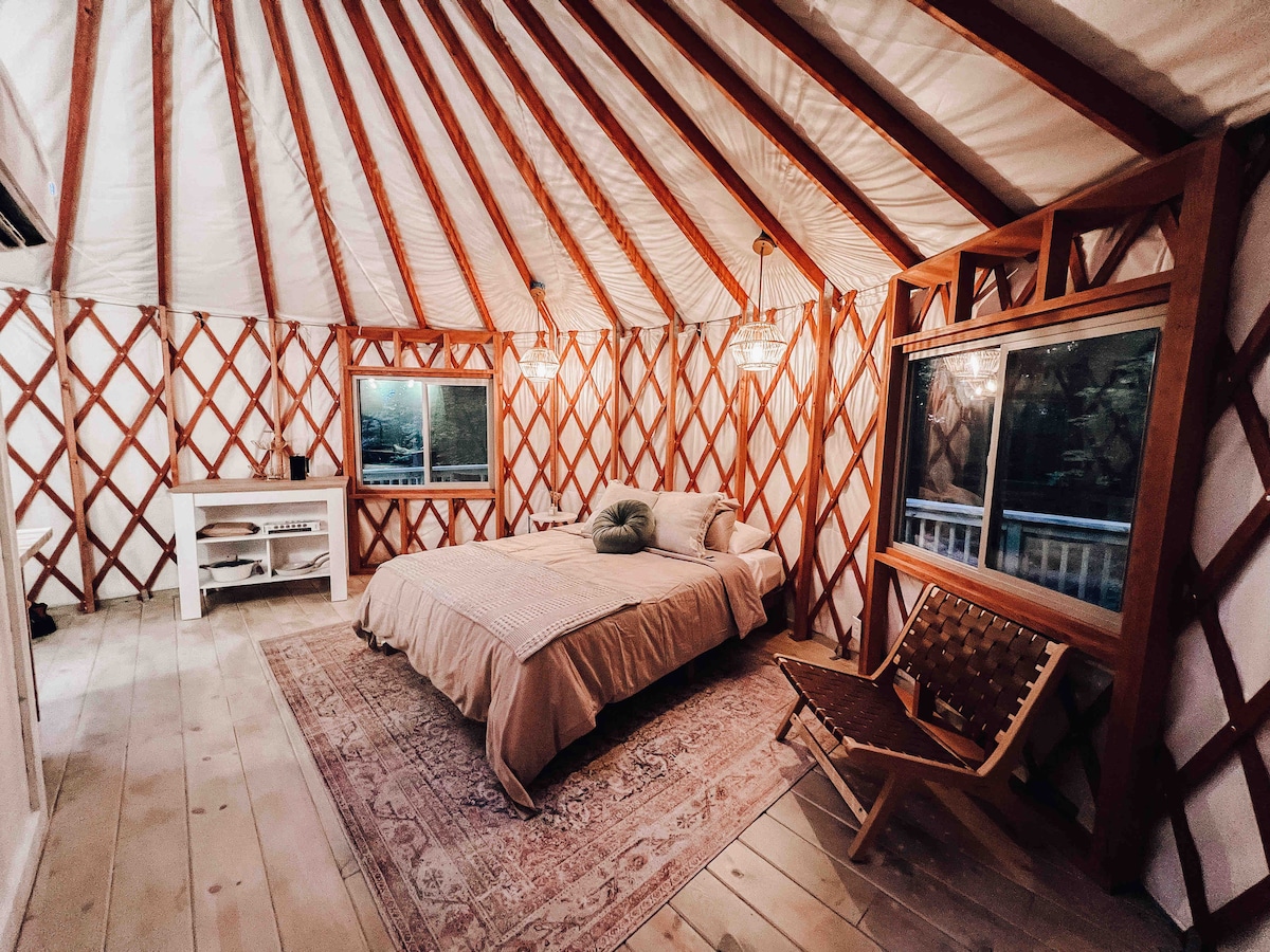 Odłącz się od codzienności i zrelaksuj w tej wspaniałej, nowo wybudowanej (2023) jurtach w Thornville w stanie Ohio, kilka minut od jeziora Buckeye. Ta jedyna w swoim rodzaju atrakcja glampingowa oferuje przytulne, a jednocześnie wyjątkowe wrażenia w pobliżu natury. Zrelaksuj się na przestronnym tarasie, skorzystaj z sauny na świeżym powietrzu lub spędź czas przy ognisku pod rozgwieżdżonym niebem. Idealne na romantyczny wypad, samotny odpoczynek lub spokojny weekend bez internetu. Ta jurta oferuje idealną równowagę między luksusem a spokojem w lesie.