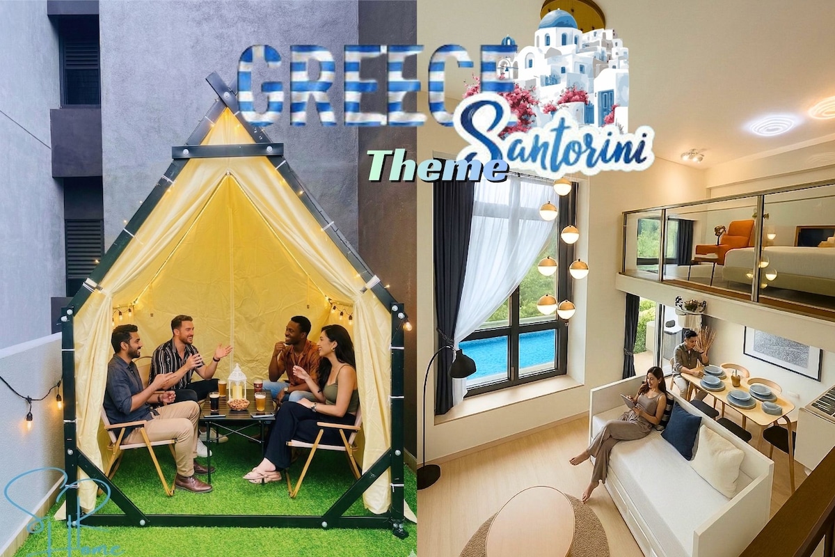 Santorini Escape in Johor Bahru Infinity Pool Front Stay with Stunning Views Relaxing Greece-Themed Retreat for Families & Friends . Experience a Mediterranean-style getaway in this Santorini-inspired homestay, located right in front of a stunning infinity pool.