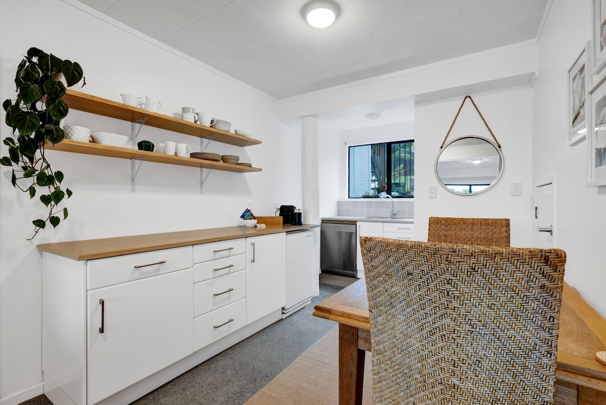 Enjoy a sunny and stylish experience at this centrally located townhouse in Matakana Village. Bright and sunsplashed with a spacious kitchen, indoor and outdoor living room, and a gorgeous bedroom upstairs with an AC / heat pump, the villa is across from 8 Wired Brewery and steps from the Farmer's Market, cinemas, and other Matakana shops and eateries.