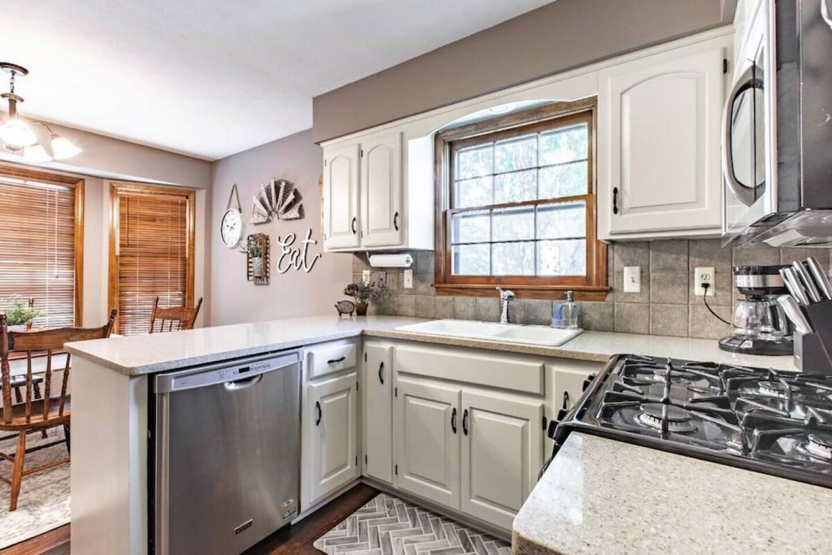 ⭐ Całkowicie odnowiony dom z 3 sypialniami w Fairway, KS – kilka minut od atrakcji KC Apartament główny na⭐ poziomie parterowym z łazienką w stylu spa + wanna na nóżkach ⭐ Otwarta kuchnia z kwartzowymi blatami + pełny bar kawowy ⭐ Przytulny salon z kominkiem gazowym i telewizorem Smart TV ⭐ Pokój gier na piętrze z konsolą Xbox + salon ⭐ Prywatne biuro, miejsce do ćwiczeń i zadbane podwórko ⭐Dogodnie usytuowany mniej niż 5 minut od The Shops of Prairie Village i około 10 minut od Country Club Plaza!