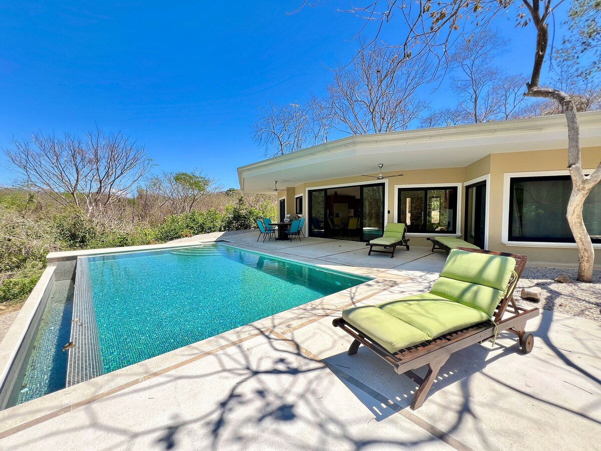 Piękna, prywatna willa z wspaniałym widokiem na ocean i odosobnionym basenem typu infinity. Bardzo popularna willa zarówno wśród nowożeńców, jak i emerytów. Jest to prywatna dzielnica z 30 willami, z obsługą menedżerów wynajmu i innych pracowników. Willa jest prawie w jednakowej odległości od lotnisk Liberia (LIR) i San Jose (SJO). Uważam, że łatwiej jest jechać na południe z lotniska w Liberii po prostej, malowniczej i utwardzonej autostradzie 21.