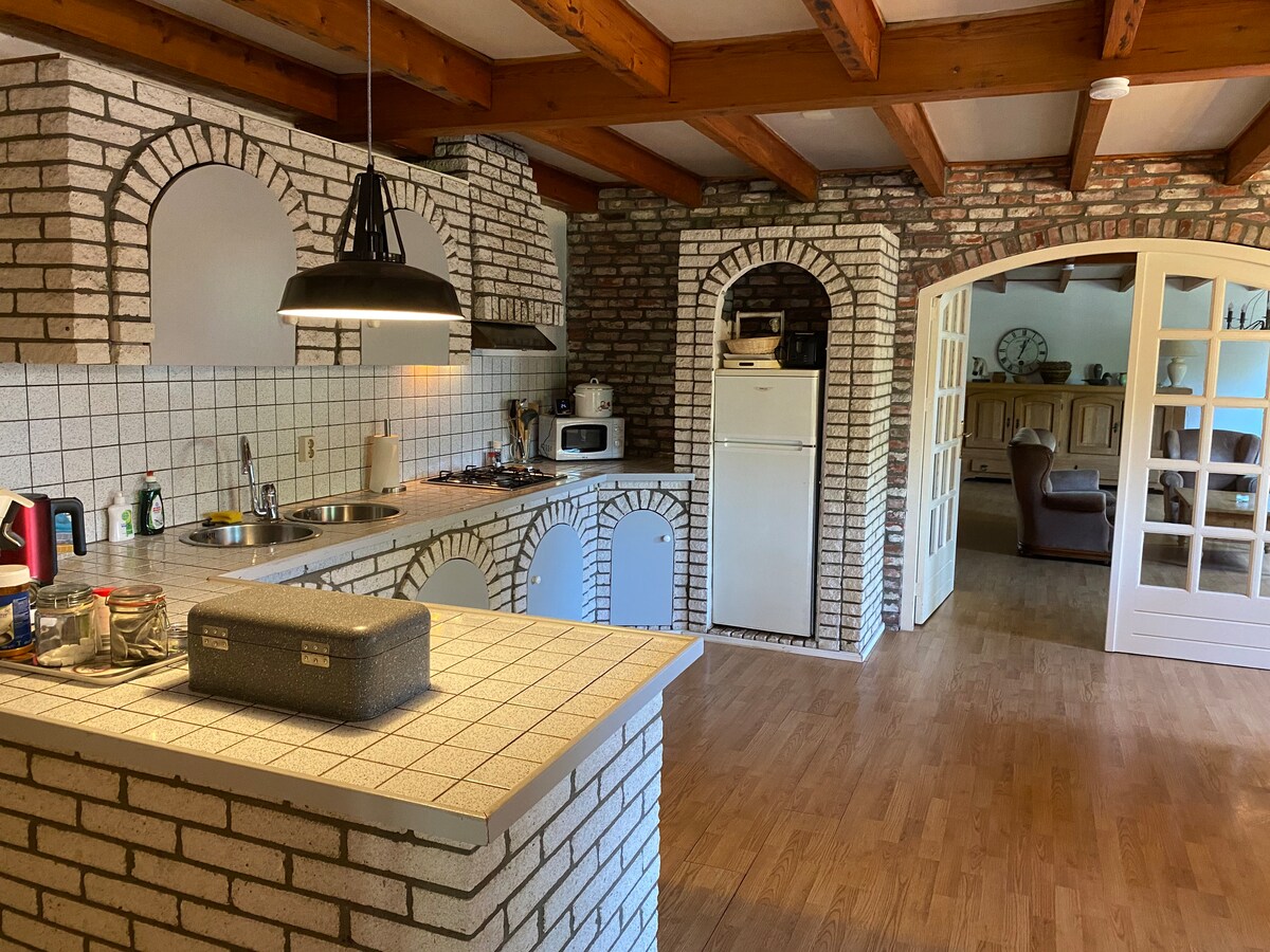 Dom jest bardzo komfortowy, nadaje się na wakacje lub do pracy zdalnej. Jest to przestronny, klimatyczny dom z otwartą kuchnią, salonem, trzema przestronnymi sypialniami i dwiema łazienkami. Z tyłu znajduje się taras z miejscem do siedzenia i wanną z hydromasażem oraz pięknym widokiem. Łóżka są pościelone. Psy są mile widziane, ogrodzony ogród. Położony w Rijsbergen przy drodweg z Bredy do Zundert, tuż poza terenem zabudowanym z supermarketami, piekarnią i restauracjami, szlakami pieszymi i rowerowymi w pobliżu.