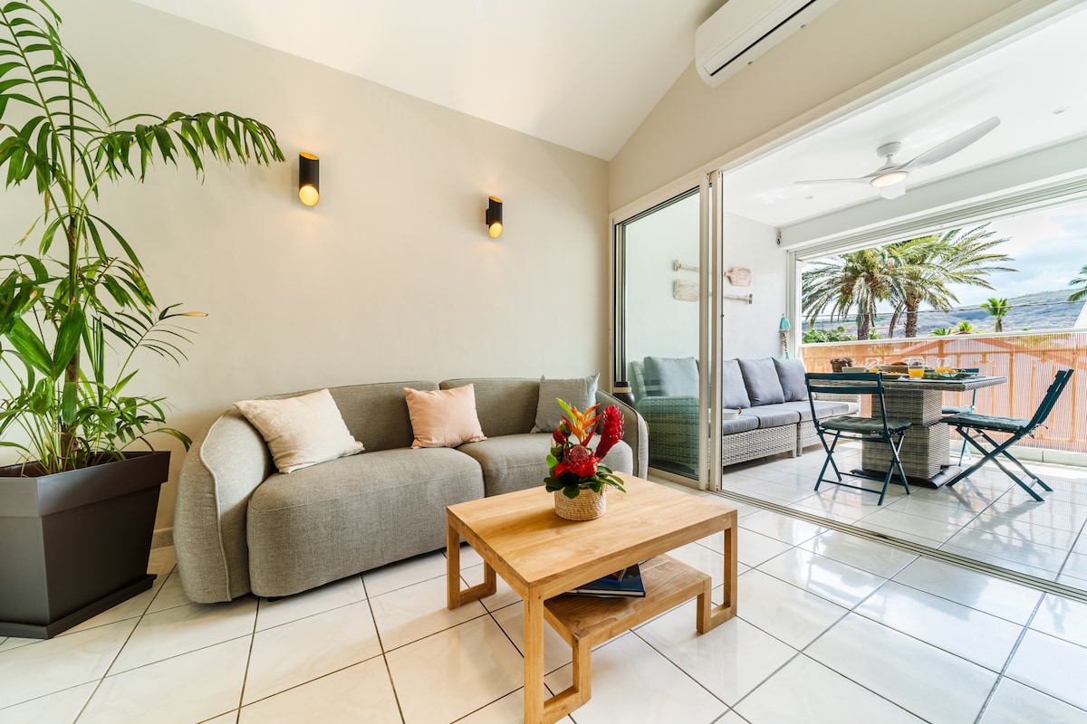 Przestronne studio z widokiem na ocean i spokojne otoczenie Witamy w naszym uroczym, klimatyzowanym miejscu, idealnie położonym w spokojnej rezydencji z basenem. Z osłoniętego drewnianego tarasu rozciąga się widok na zalesiony ogród, ocean i zachód słońca. 800 m od laguny między Saline-les-Bains i Saint-Gilles, w pobliżu trasy zdrowotnej, idealna lokalizacja do odkrywania najpiękniejszych plaż wyspy. Szybki dostęp do Route des Tamarins, aby odkryć cuda Reunionu.