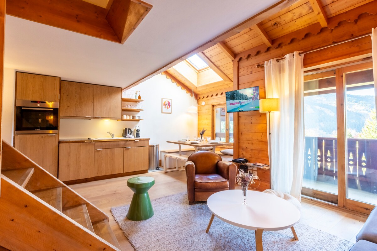 Zatrzymaj się w pięknym mieszkaniu o powierzchni 100 m² u podnóża stoków w Méribel Village, położonym na najwyższym piętrze pięknej rezydencji w autentycznym stylu. Rozkoszuj się widokami na góry, słonecznym balkonem, bezpośrednim dostępem do stoków narciarskich i strefą wellness z basenem, sauną i łaźnią turecką. Z mieszkania bezpośredni dostęp na narty do wyciągu krzesełkowego i sklepów. Idealne dla rodzin i grup przyjaciół szukających pobytu premium w rozległym obszarze narciarskim 3 Dolin