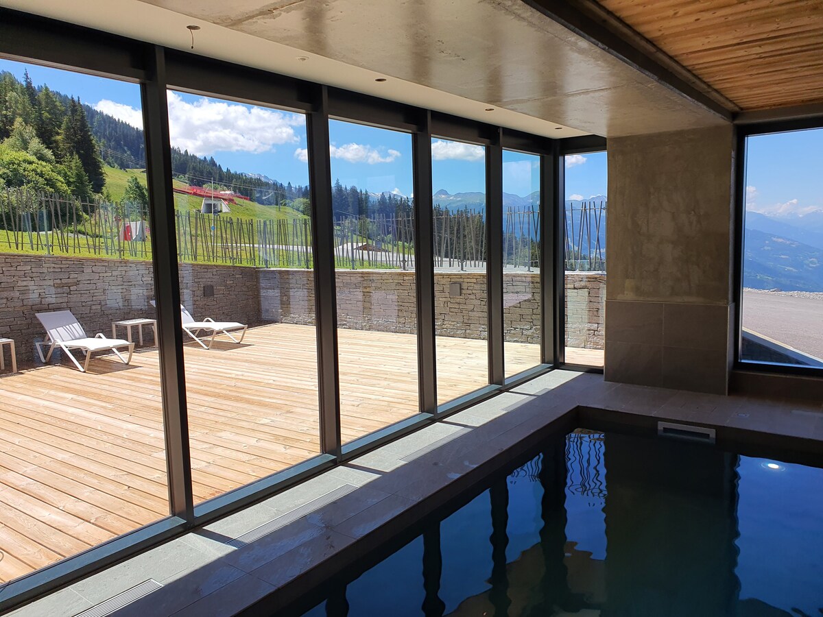 Arc 1950 2bdrm 6/8 guests Ski-in/out Pool+Jacuzzi