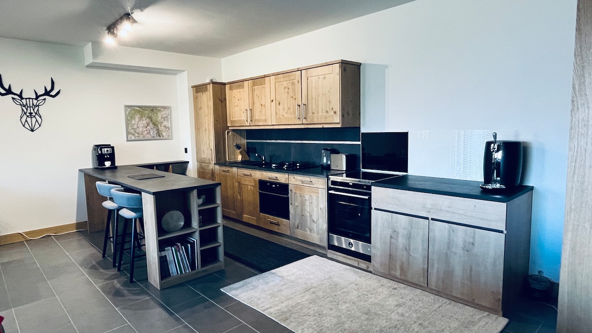 Ten wspaniały apartament, całkowicie odnowiony, przeznaczony dla 5 do 7 osób, w stylu prestiżowego domku górskiego, położony w rezydencji 5* Les Sources de Marie, w tym prywatnym SPA DEEP NATURE, oferuje rzadkie i unikalne usługi w wiosce. Będziesz mógł bezpłatnie korzystać ze wszystkich udogodnień rezydencji (fitness, sauna i jacuzzi) oraz z udogodnień rezydencji Auberge Jérôme (ogrzewany basen i jacuzzi na świeżym powietrzu, łaźnia turecka, sauna i siłownia).