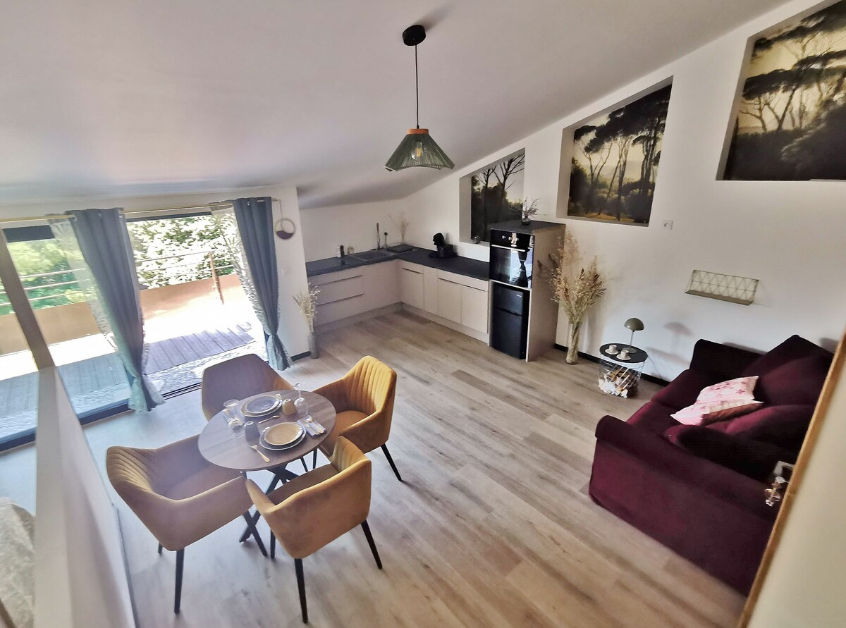 🌞 Witamy w naszym uroczym aneksie o powierzchni 42 m², pośrodku bujnej nieruchomości, otoczonej wieloma atrakcjami turystycznymi w regionie Var 🏞️! Ten mały, spokojny ośrodek, otoczony bujnym ogrodem🌸, oferuje idylliczną scenerię na czas pobytu. Dzięki wygodnej i starannie zaplanowanej przestrzeni🛋️ mieszkalnej będziesz mieć również ekskluzywny dostęp do naszego odświeżającego basenu🏊♂️. Mały raj dla niezapomnianych wspomnień🌟!