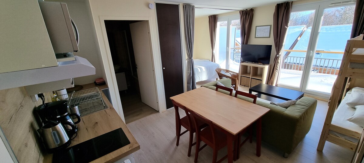 Jasny apartament typu T2, oświetlony słońcem, w centrum ośrodka La Feclaz