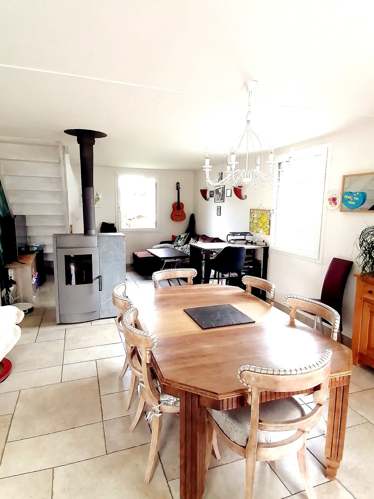 Umeblowana turystyka jednopoziomowa 4* 73m² na parterze naszego domu w dzielnicy mieszkalnej. 3 sypialnie, 1 prysznic, 1 toaleta, 1 salon, kuchnia otwarta na jadalnię, miejsca parkingowe, taras ze stołem i krzesłem. To miejsce na pobyt wyposażone jest w: suszarkę do włosów, żelazko z deską do prasowania, pralkę i suszarkę, zmywarkę, piekarnik, lodówkę/zamrażarkę, kuchenkę mikrofalową, czajnik, ekspres do kawy i Dolce Gusto, toster, raclette i fondue, telewizor, DVD, sprzęt do pielęgnacji niemowląt.