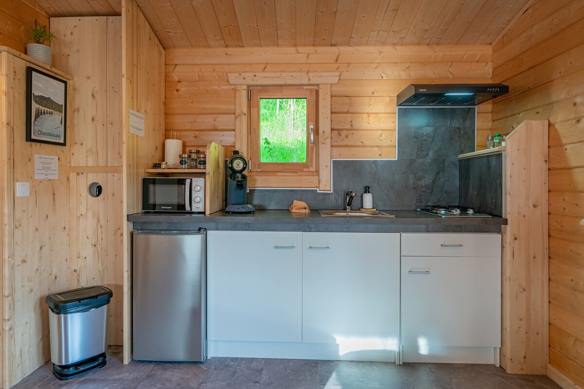 Domek oferuje panoramiczny widok na szczyty ze wszystkich stron. Oprócz salonu, którego przeszklone okna sprawiają wrażenie, że mieszkasz w samym krajobrazie, piętro oferuje 3 sypialnie (2 zamknięte) i łazienkę, wszystkie z dużymi oknami, które pomnożą punkty widokowe. Wystrój wnętrz, będący mieszanką autentyczności i współczesności, nawiązuje do stylu górskiego domku, zgodnie z dominującym drewnem, pozostawionym w naturalnym stanie. Dobór kolorów i materiałów zapewnia przytulną atmosferę.