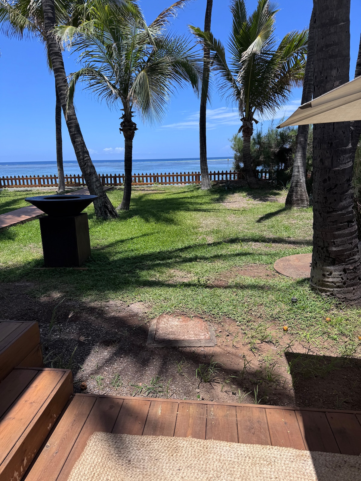 Bungalow entièrement équipé. Situé à 50 METRES (réellement) du lagon de l'Ermitage et sa magnifique plage baignable protégée par sa barrière de corail, et peuplée de poissons multicolores. Le bungalow de 19 m2 est entouré d’un petit jardin tropical entièrement privatif et clôturé. Il est climatisé et équipé d’un lit double (140cm), séparé par une porte de la salle de douche/WC. Cuisine extérieure de 10 m2 équipée avec terrasse à l'usage exclusif du locataire.