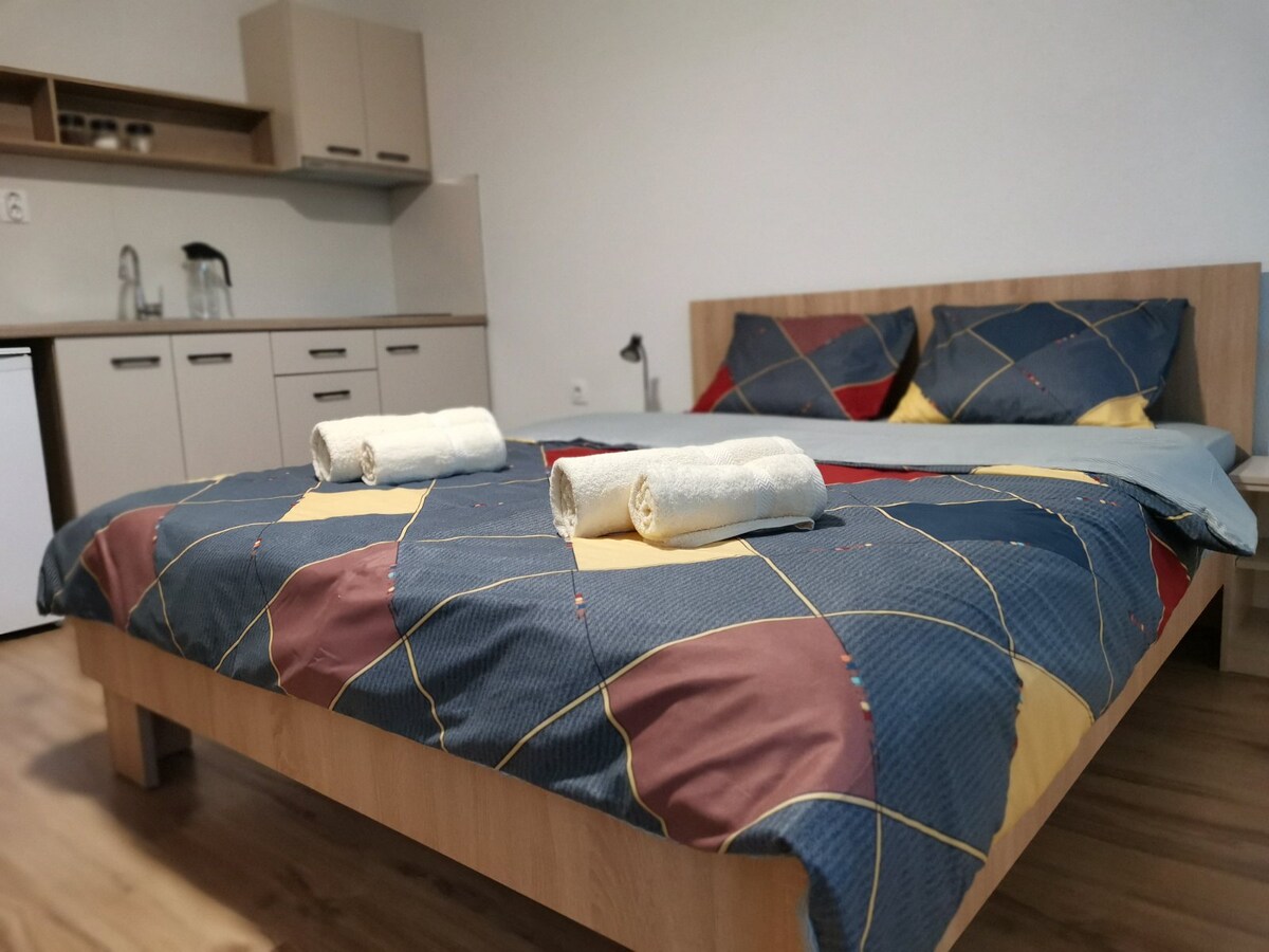 Jednopokojowy apartament w starej części miasta z pięknym widokiem. - łóżko podwójne - odpowiednie dla dwóch osób dorosłych - prywatna toaleta, balkon, telewizor, Wi-Fi, lodówka