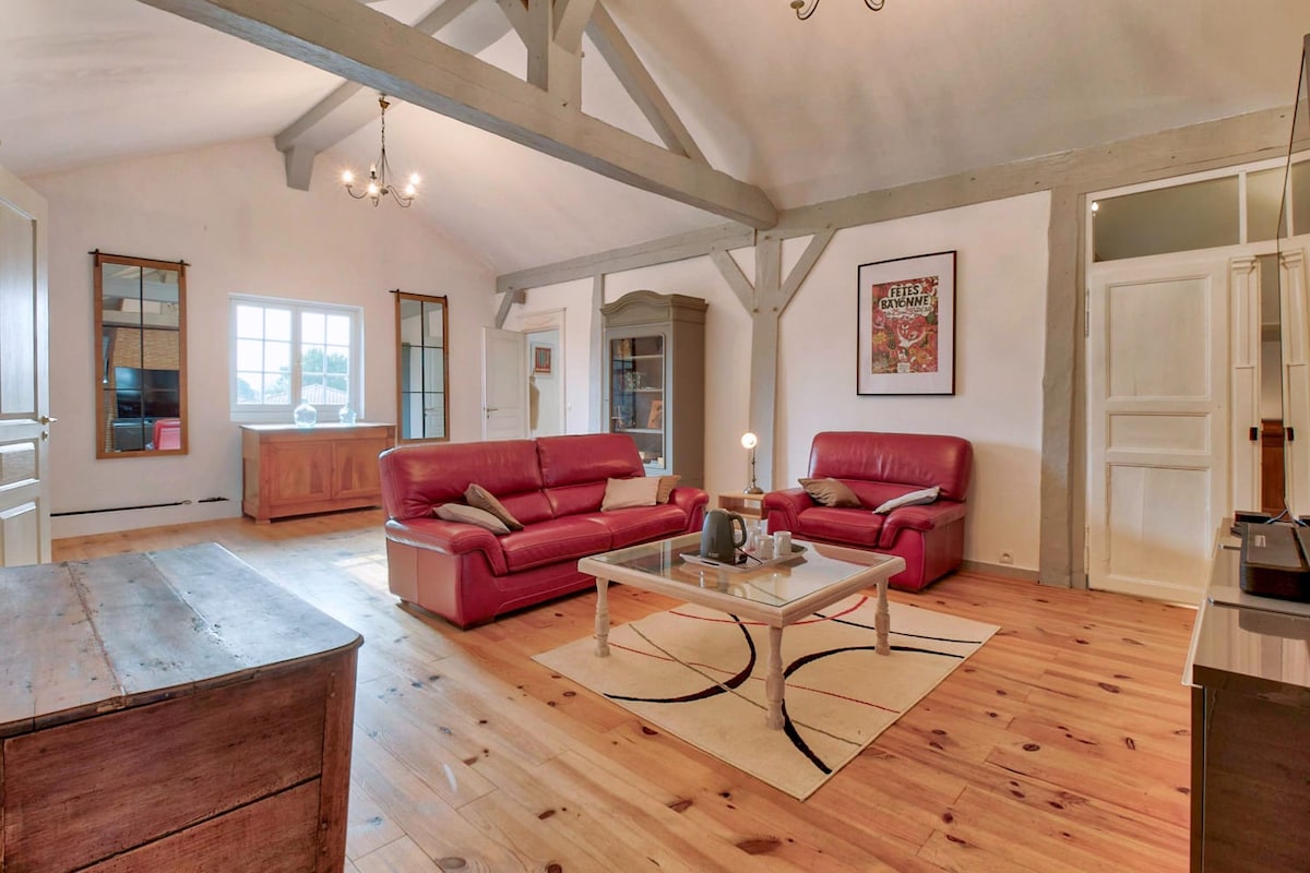 HostnFly offers you this charming 230 square meters accommodation with a POOL and a tree-lined garden, without any overlooking, and which is suitable for twelve people. It is ideally located in a quiet neighborhood, 10 minutes on foot from the city center where all the shops, restaurants, and bars are located. Moreover, the famous Lake of Léon, one of the largest in the Landes, is a 10-minute walk from the villa: you will have the opportunity to discover its iconic spots during your vacation.