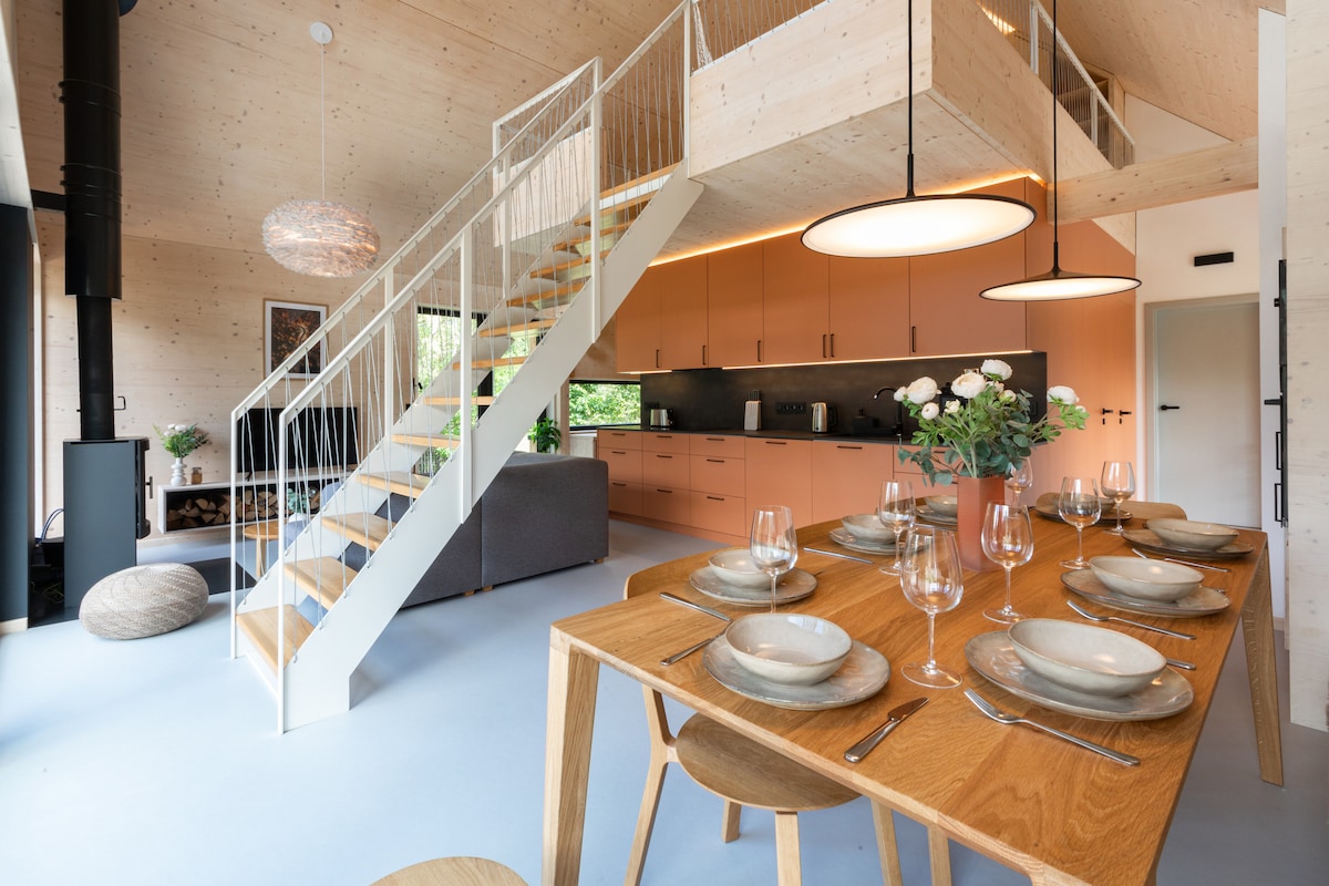 Stylowe zakwaterowanie w samym sercu Gór Izera, gdzie każdy może je znaleźć - idealne dla miłośników wędrówek i jazdy na rowerze, dla grupy przyjaciół i rodziny z dziećmi, dla miłośników adrenaliny, którzy lubią Singltrek pod Smrkem i tych, którzy szukają spokoju i relaksu na łonie natury..... lub z winem w jacuzzi. Dzieci są w domu - myśleliśmy o nich. Znajdą dom parady ze zjeżdżalnią, piaskownicą, łóżkiem z jagodami, prywatnym strumieniem i wszystkim, czego mogą potrzebować.