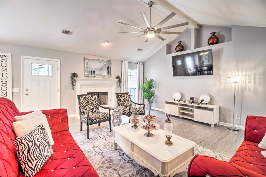 Zarezerwuj pobyt w tym eleganckim domu wakacyjnym w Hinesville. Ciesz się rodzinnym czasem grillując na ogromnym podwórku i relaksując się w KINIE DOMOWYM. Ten dom z 4 sypialniami i 2,5 łazienką znajduje się niecałe 2 mile od Fort Stewart i około 35 mil od Savannah. W PEŁNI WYPOSAŻONY na krótkie wycieczki i dłuższe pobyty. Idealne dla RODZIN WOJSKOWYCH, KONTRAKTORÓW I PODRÓŻNYCH PIELĘGNIARZY. WSPARCIE DLA WETERANA! Ponad 23 lata służby w wojsku! Teraz służymy naszej społeczności! W 100% własność weteranów