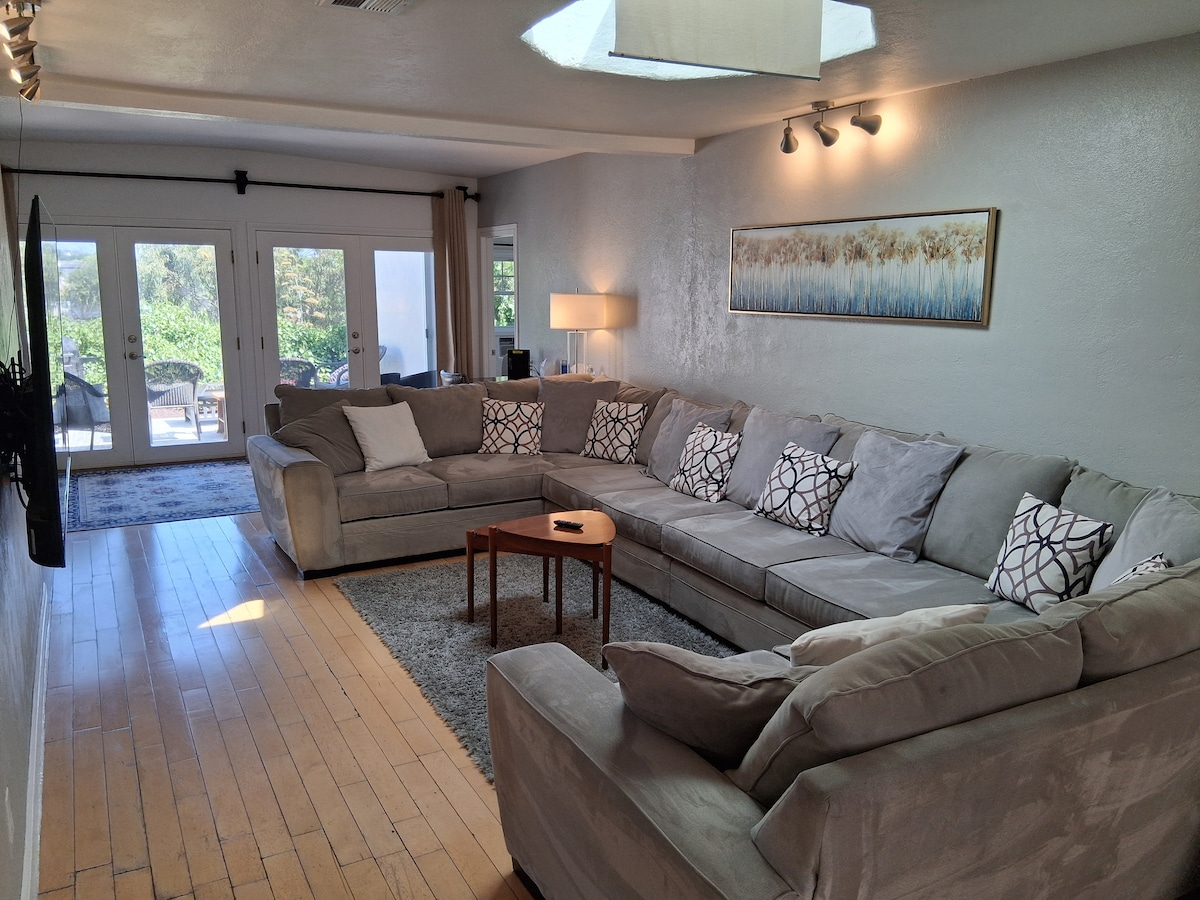 3 prywatne sypialnie / 3 łóżka typu Queen / 3 łazienki / widok na kanion Dom jest blisko wszystkich / 3 do 5 mil: Liberty Station/Beach /Lotnisko/Centrum / Bazy wojskowe /Stare Miasto / Port/Zoo/SeaWorld 3 sypialnie z łóżkami typu Queen – prywatne, bez wspólnych ścian / 1600 stóp kwadratowych / Patio z widokiem na kanion i grillem/ 8 osób, rustykalny stołowy / 75-calowy telewizor TCL / Nowoczesna luksusowa sofa / 3 łazienki = 1 prysznic / 2 wanny / Klimatyzacja we wszystkich sypialniach/wentylator sufitowy/ Klimatyzacja w pokoju/saloniku Nowoczesne – pralka/suszarka/piekarnik/lodówka/kuchenka mikrofalowa/zmywarka/