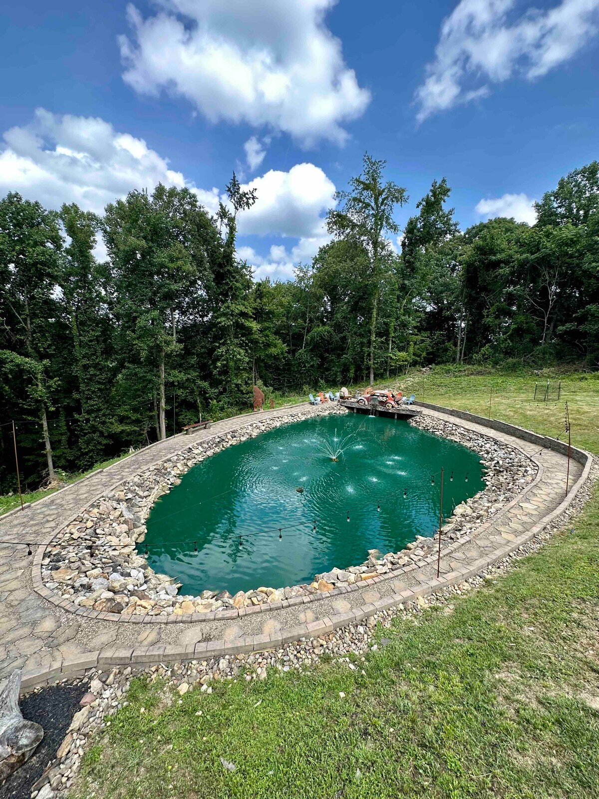 Położony w Charleston, WV w pobliżu CAMC Memorial Hospital. 10 minut od lotniska Yeagar. Ta w pełni umeblowana piwnica została niedawno przebudowana, co zapewnia cichą i czystą przestrzeń do relaksu lub pracy. Duże łóżko typu king size i rozkładana sofa typu queen size. Dostępne są materace powietrzne. Dwie pełne łazienki. Zupełnie nowe jacuzzi. Wanna z hydromasażem. Możesz się zrelaksować i odpocząć na tarasie, podziwiając staw i wodospad. W nocy można spokojnie przejść się wokół stawu pod światłami. Bezpłatne Wi-Fi.