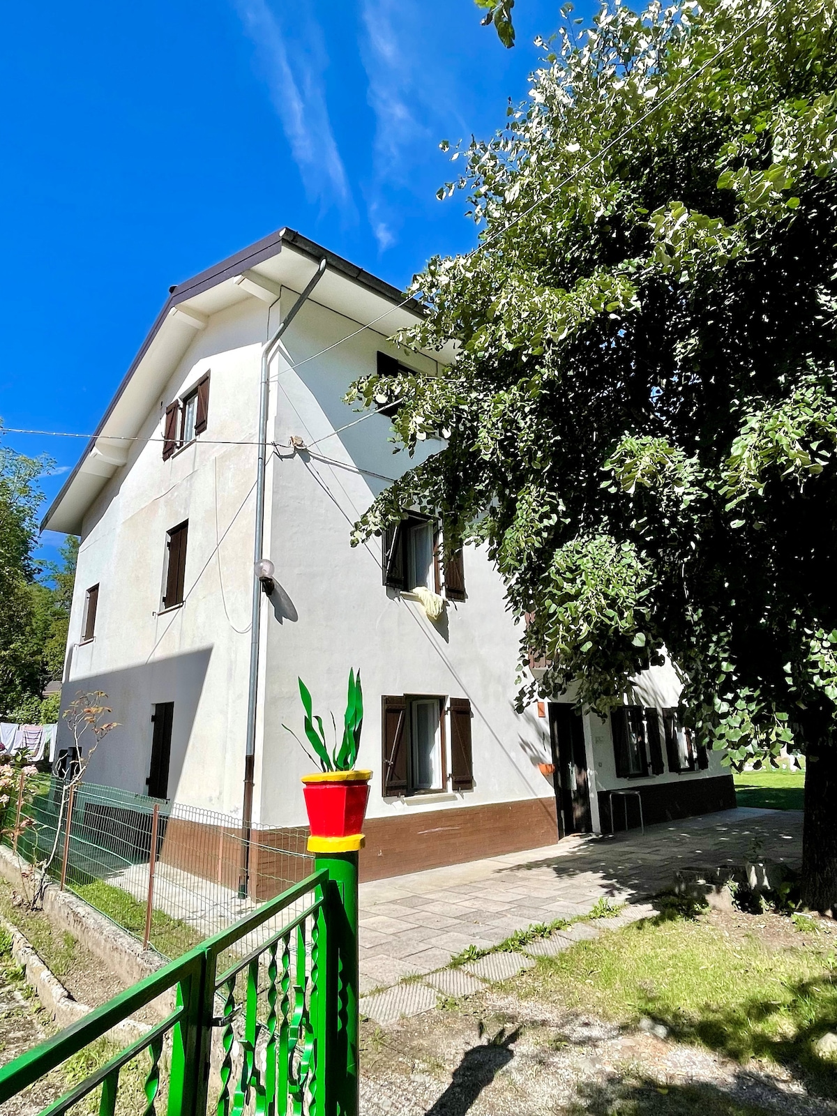 Ciche zakwaterowanie otoczone zielenią, położone na pierwszym piętrze, z sypialnią dwuosobową, dużą kuchnią-salonem na planie otwartym i jasną werandą. W pełni wyposażona kuchnia i łazienka z wszystkimi udogodnieniami. Z pokojów można podziwiać relaksujący widok na okolicę i otaczające góry. Do dyspozycji gości jest duży ogród z leżakami, stołem do ping ponga i rowerami. Jezioro Cavazzo, Casa delle Farfalle di Bordano, Tolmezzo i Terme di Arta znajdują się w odległości zaledwie kilku minut jazdy.