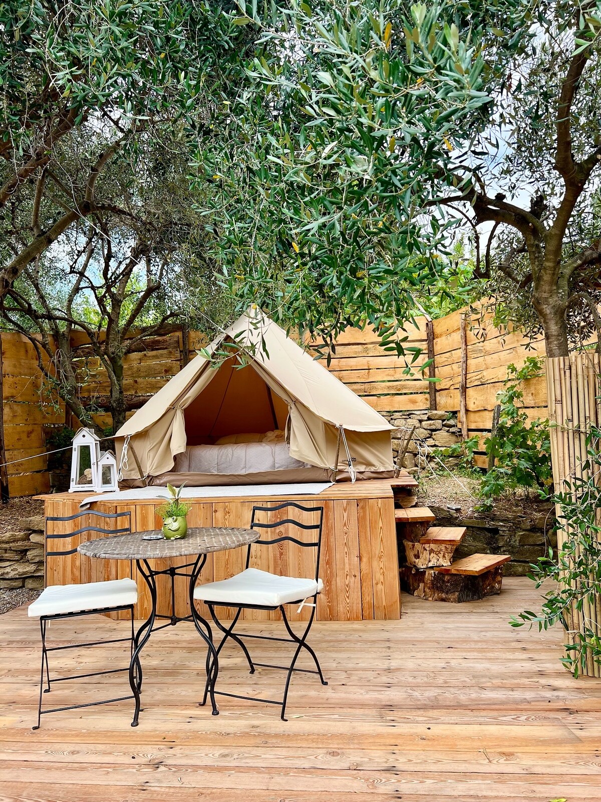 Położony wśród zielonych wzgórz Ligurii, Stecadò Glamping oferuje wyjątkowe doświadczenie na łonie natury, idealne dla osób szukających ucieczki od codziennego zgiełku. Nasze zasłony pozwalają spędzić pobyt w całkowitym relaksie; są wyposażone we wszystkie niezbędne udogodnienia, w tym podgrzewaną wannę z hydromasażem do wyłącznego użytku. Jesteśmy małą firmą rodzinną i naszym priorytetem sprawiają, że czujesz się jak w domu.