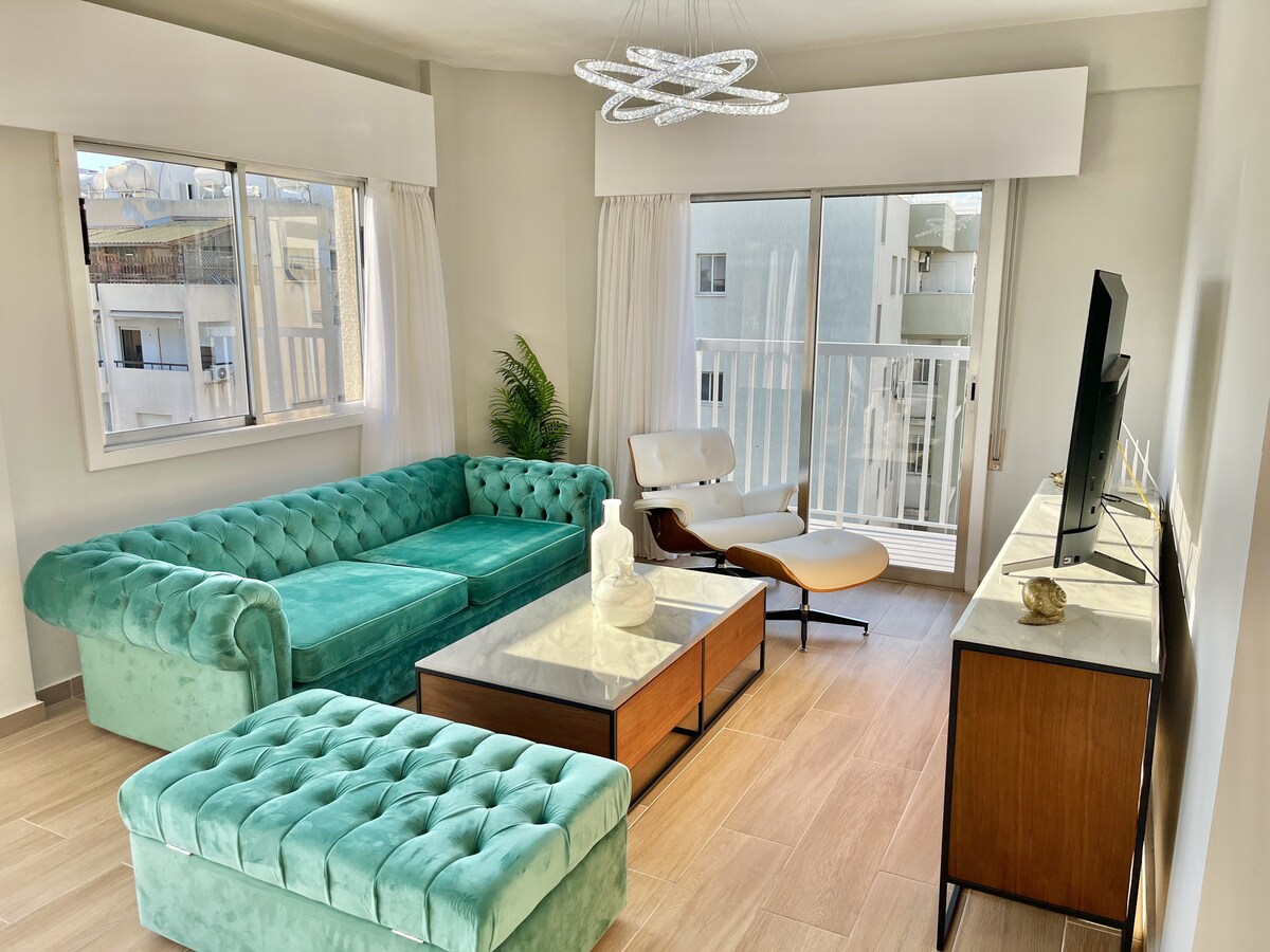 This beautifully decorated apartment located on 2nd floor of new building and is the perfect getaway for travelers who appreciate warm tones, soft textures, and a calming atmosphere. It’s a convenient location with easy access to the main roads, making it simple to reach the heart of the city. To get to Limassol Marina from Tefkrou Street, it's just a short 8 mins drive making the marina easily accessible. Book your stay and experience effortless comfort in a space that feels like home.