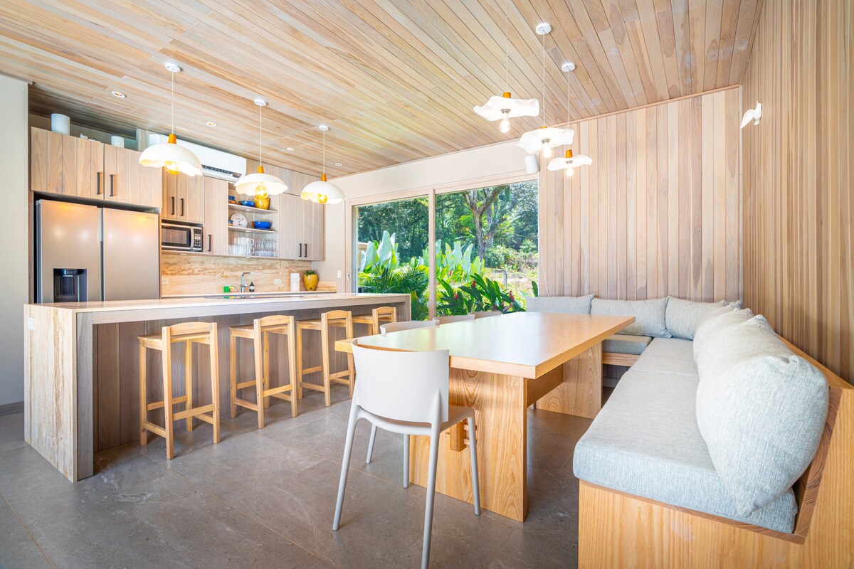 Jeśli elegancki modernizm jest bardziej w Twoim stylu, zapraszamy do odkrycia naszych nowo wybudowanych domów, każdy dyskretnie położony obok Parku Narodowego Cahuita i z prywatnym basenem dla siebie. Te pięknie zaprojektowane 2 sypialnie (oba z łazienkami) domy, wygodnie spać 6. Zapraszamy do korzystania z kuchni/życia w stylu amerykańskim, relaksując się w chłodnych klimatyzowanych pomieszczeniach i mocząc się w nieprzerwanym widoku na las i pysznie tropikalne ogrody.