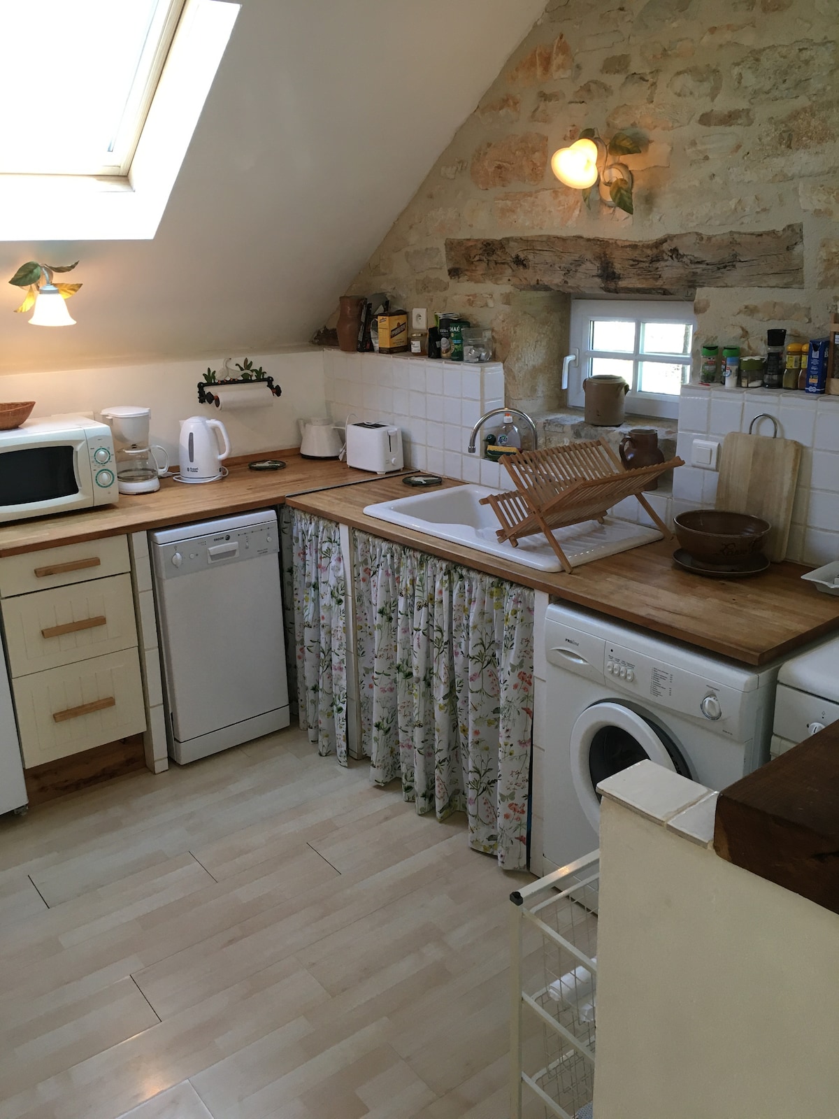 This Gîte is located in a very quiet village in a beautiful green area in the region "Creuse" of the Limousin, France. Ideal for peace and nature seekers and super for the cyclist. Super supermarket and train station 2 minutes walk. Restaurants and large supermarkets and other facilities can be reached within half an hour. This Gîte has a fully equipped kitchen with washing machine. Upstairs 2 spacious bedrooms and a luxurious bathroom.
