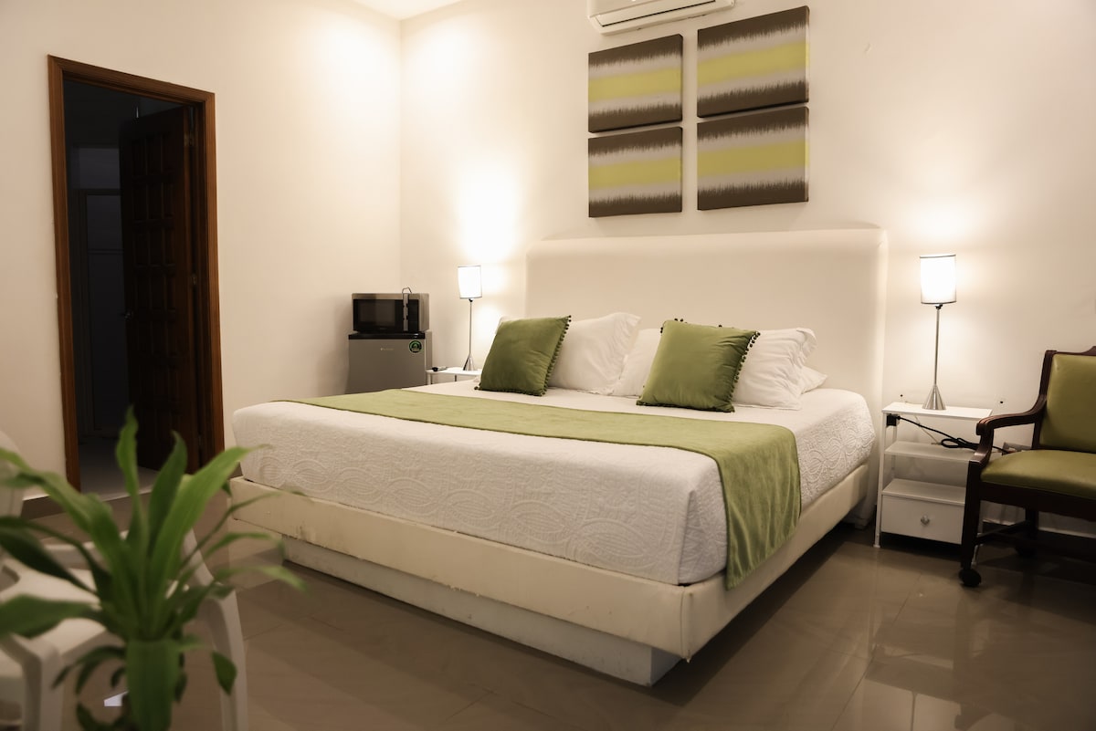 Habitación King Size con Baño Privado – Hotel Raffaello Ubicada en el primer nivel, nuestra Habitación ofrece fácil acceso y un ambiente acogedor y tranquilo, ideal para descansar después de un día de paseo o trabajo. Cuenta con una cama king size, baño privado, aire acondicionado, televisión, escritorio, Wi-Fi gratuito. Perfecta para familias, amigos o quienes buscan comodidad y conveniencia en una excelente ubicación en Linares.