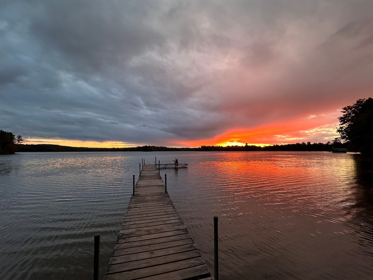 Spokojny ośrodek nad jeziorem z nowo wybudowanym dwupoziomowym budynkiem na końcu Hickey Ave. Udogodnienia na świeżym powietrzu obejmują prywatne doki, piaszczystą pierzeję i przestronne podwórko z ogrodem truskawkowym. Nowoczesny wystrój w stylu Northwoods ma dwie sypialnie, które mogą pomieścić do siedmiu gości, a także dobrze wyposażoną kuchnię i kominek gazowy w salonie. Dostępne są ręczniki, pościel, przybory toaletowe i podstawowe wyposażenie kuchni.