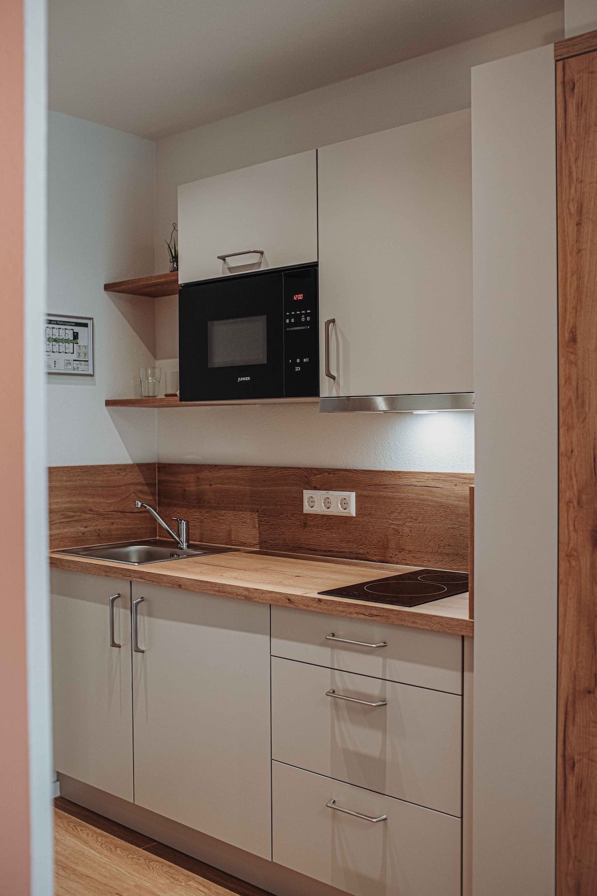 Stylowe mieszkanie dwupoziomowe „Bonifatiuskirche” znajduje się na 2. piętrze budynku Markt22, bezpośrednio na zabytkowym rynku w Lingen. Jest wyposażone w wysokiej jakości meble i idealnie nadaje się dla 2–4 osób. Na 50 m² znajduje się oddzielna sypialnia z łóżkiem sprężynowym, kolejny pokój z rozkładaną sofą, dwa telewizory Smart TV, w pełni wyposażona kuchnia i nowoczesna łazienka z prysznicem na poziomie podłogi. Bezkontaktowy dostęp, parking rowerowy i mały sklep samoobsługowy „MarktMoment” uzupełniają ofertę.